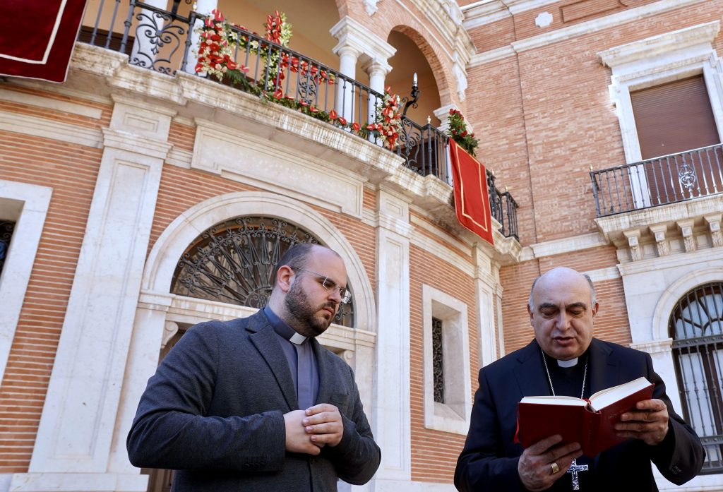 - Mons. Enrique Benavent bendice la Cruz instalada en la logia del Palacio Arzobispal