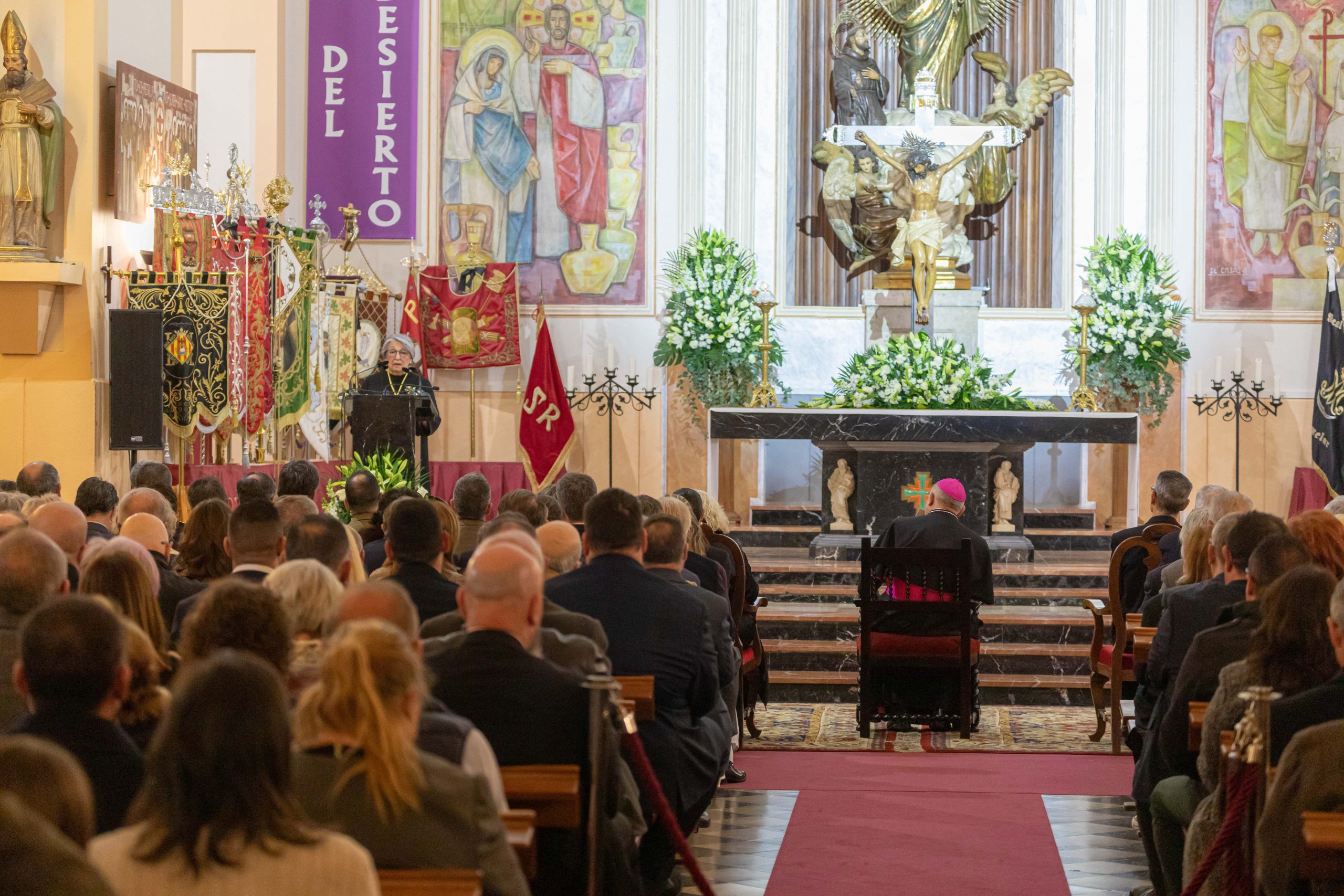 El acto tuvo lugar en la parroquia Nuestra Señora de los Ángeles, en el barrio del Cabanyal, y estuvo presidido este año por el Santísimo Cristo del Buen Acierto, imagen titular de la Hermandad de Vestas del Santísimo Cristo del Buen Acierto, y los estandartes y banderas de las 31 cofradías, hermandades y corporaciones de la Semana Santa Marinera.