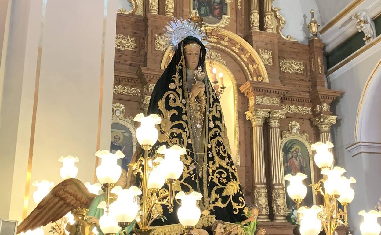La imagen de la Virgen de la Soledad “también lleva un nuevo manto, obra de Bordados Barber, que fue bendecido por el obispo emérito de Huelva, monseñor José Vilaplana”, ha subrayado.