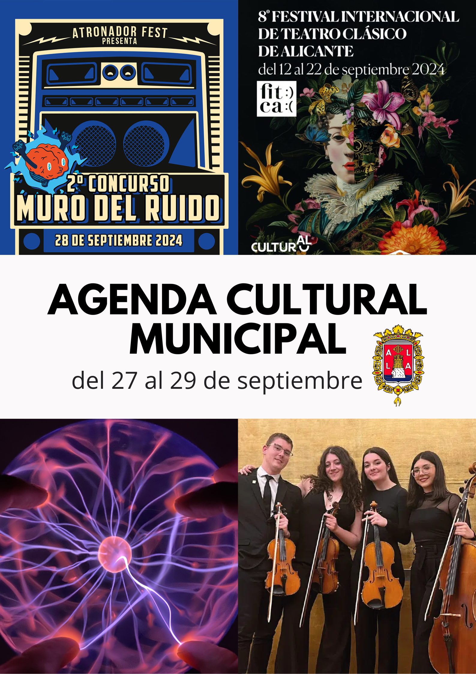 En el Principal, el 8º Festival Internacional de Teatro Clásico llega con la representación de ‘Gimm. Cuentos por contar’, ‘Para la libertad’ y ‘Consciència’. El Centro Cultural de las Cigarreras acoge, también en su 8ª edición, el ‘Atronador Fest’, con música electrónica experimental, electroacústica, ruidismo, performances y artes visuales. El Espacio Séneca será quien trae la ciencia, con el ‘Museo Didáctico Interactivo de Ciencias de la Vega Baja (MUDIC)’ dónde encontrar módulos interactivos como bolas de plasma o el teorema de Pitágoras; la exposición de ‘La Marie Curie del Mediterráneo’ y la ‘Feria Mednight. La Noche Mediterránea de las Investigadoras’. Al Castillo de Santa Bárbara regresan los conciertos y lo hacen con el ‘Cuarteto Marea’. Y las Fiestas Patronales de la Ciudad de Asís llegan con sus tradicionales pasacalles, juegos, verbenas y almuerzos para disfrute de vecinos y de todo aquel que quiera pasarse por el barrio a despedir el verano.