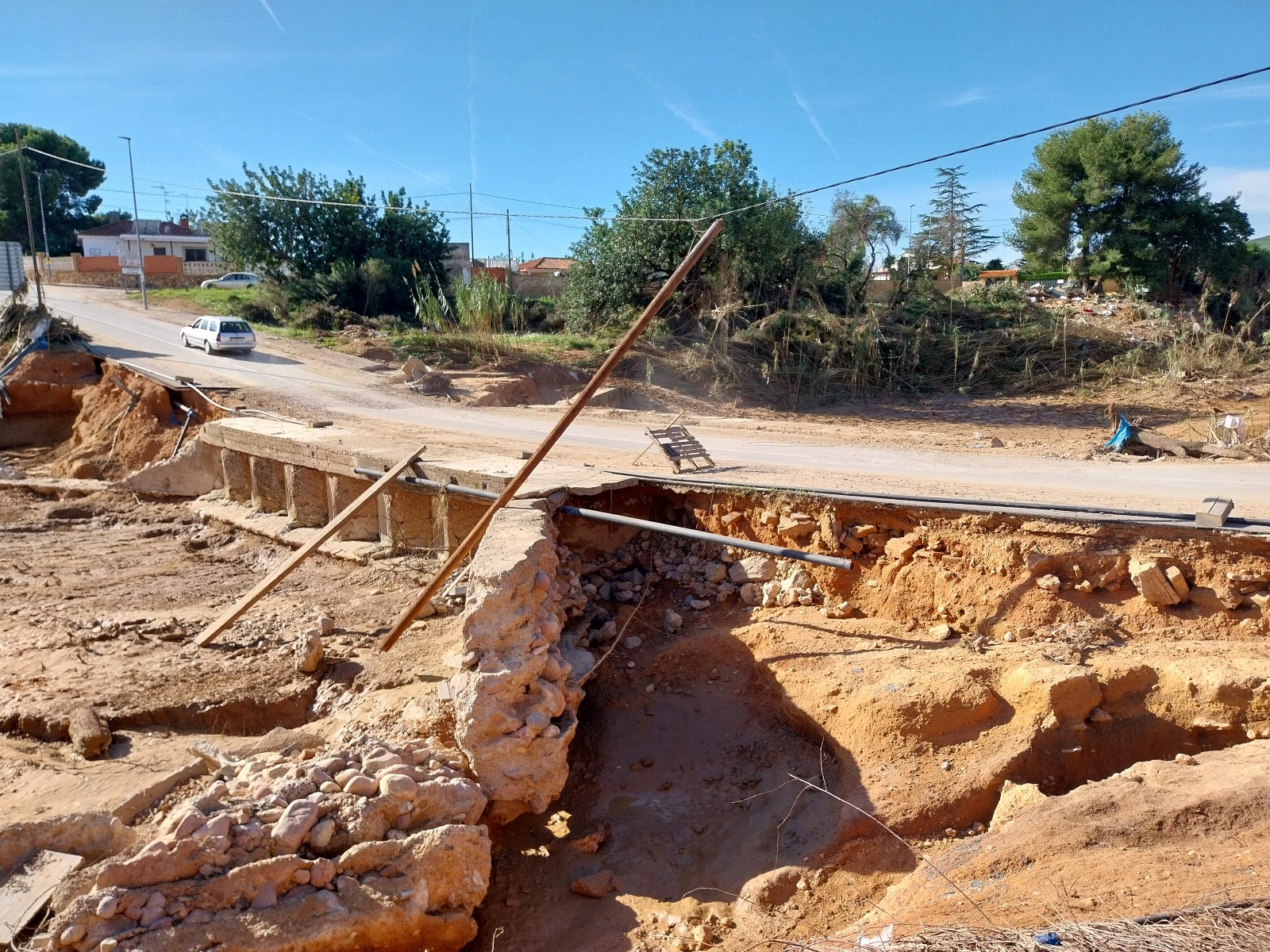 Tras las inspecciones visuales realizadas por los técnicos del Servicio de Obra Civil e Infraestructuras y Servicios Urbanos del Ayuntamiento de Torrent en las horas posteriores a la DANA se constata la existencia de los daños en la carretera de entrada a la urbanización el pantano sobre el barranco cañada de Pequé que a continuación se detallan:
