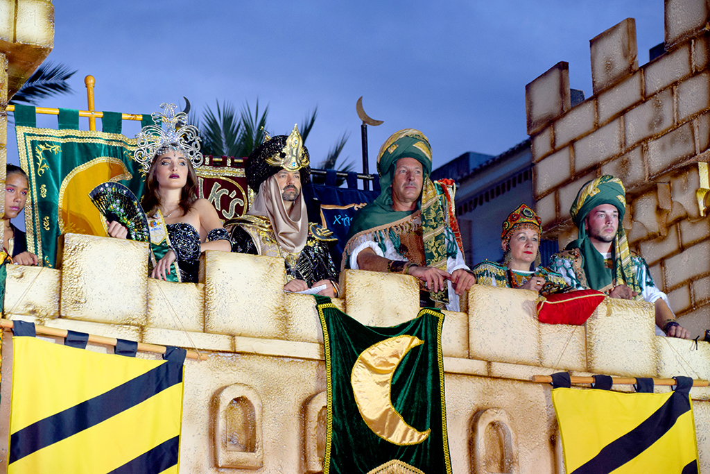 El grito de “¡Xàbia es cristiana!” señala la llegada de los Desfiles de Gala. Una esperada cita en la que cada una de las filaes exhibirá sus mejores trajes en un espectáculo que combina colorido, música, alegría y fantasía que, si bien el sábado vivirá su primera gran jornada, la del domingo promete sorprender con el boato de la Capitanía Almoriscos que, hasta el momento, se guarda en absoluto secreto.