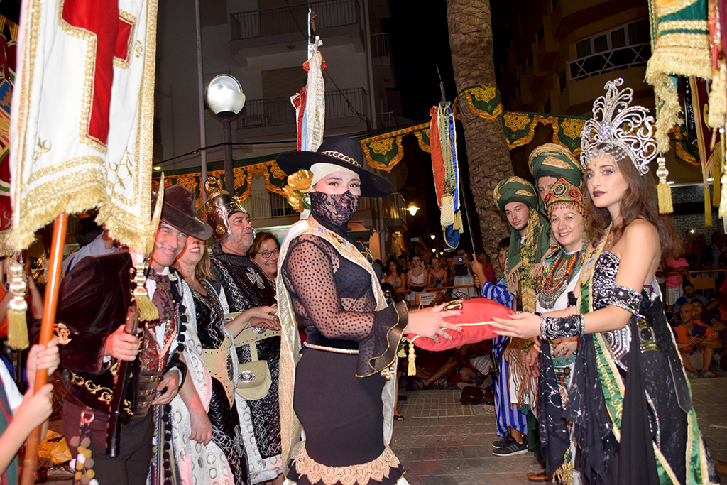 Xàbia vuelve a ser cristiana. La llegada del fin de semana trae consigo la recta final y más intensa de los Moros i Cristians de Xàbia con los Desfiles de Gala. La fiesta recreó anoche el acto de Reconquista Cristiana por el que el bando de la cruz recupera la identidad originaria de la villa.