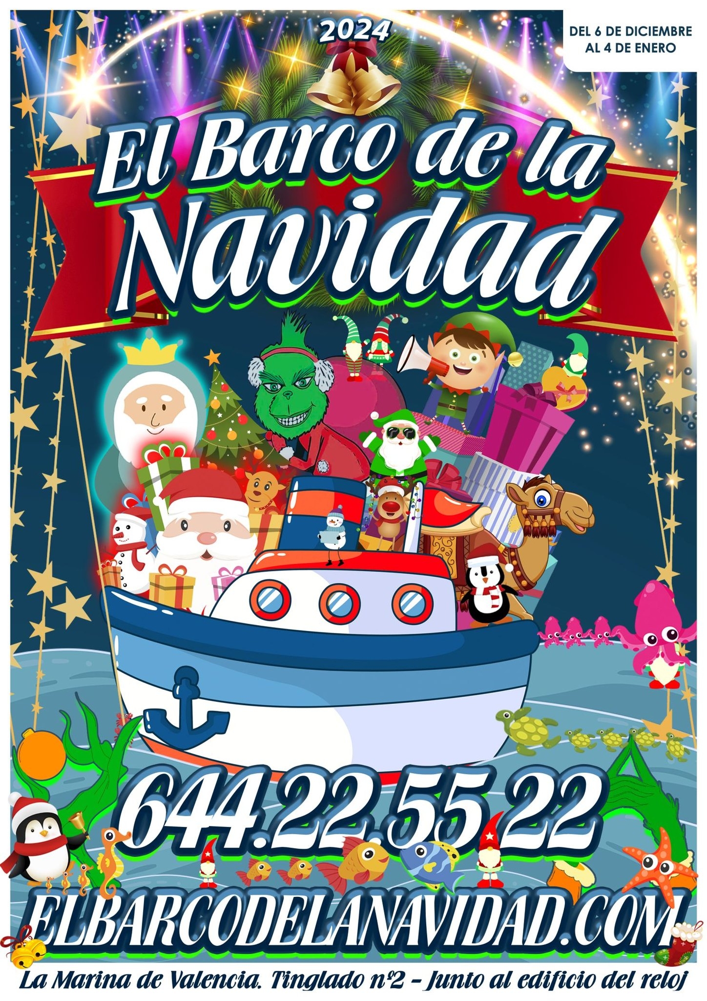 El Barco de la Navidad está en el Puerto de Valencia del 6 de diciembre al 4 de enero. Operado por Boramar Catamarans, este barco ofrece un paseo por el interior del Puerto mientras las familias conocen, en persona, a Papá Noel. Además los más pequeños podrán entregar las cartas en el buzón mágica. A partir del 25 de diciembre, serán los Reyes Magos los que viajen a bordo de este barco.