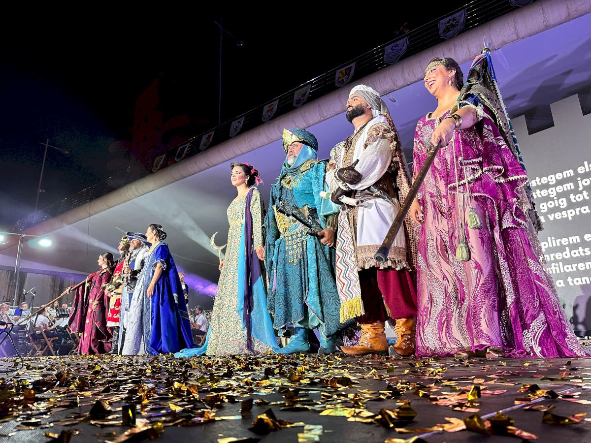 En los discursos no faltaron elogios para los cargos 2023, que se despedían esa noche para dejar paso a sus sucesores. Se trataba, por el bando moro de la comparsa Zaidíes, de Carles García, María Garcíafilia, Marta Varó y Sergi Sebastiá. Y a los cristianos de la comparsa Jaume I Rubén Baeza, Noelia Egea y Mónica García y Pepe Lozano. “Espero que se lleven un buen recuerdo de su año como cargos, y deseo que hayan disfrutado al máximo cada uno de los actos y momentos de esta maravillosa andadura”, señaló Marga Sebastiá.