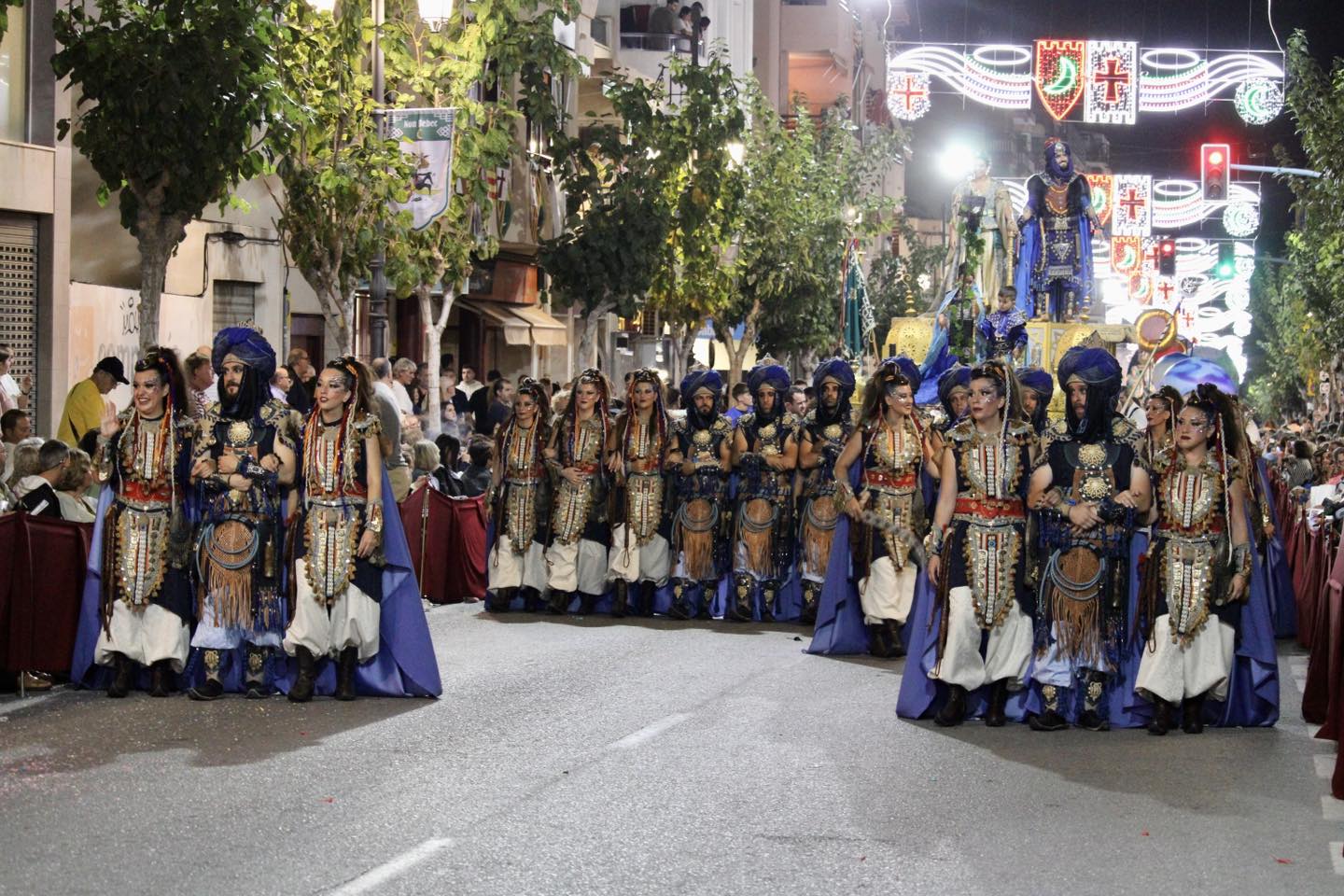 El boato cristiano daba cobertura a la banderera, Carla Rubio Planelles; el embajador, Pepe Bernabeu Abad; la capitana, Alejandra Villaplana i Brotons, y el capitán, Antonio R. Moñinos Baeza. Dividido en cuatro bloques bien diferenciados, dio paso a poblados, espectáculos de lucha, halcones, águilas, filas especiales, ballets y carrozas.