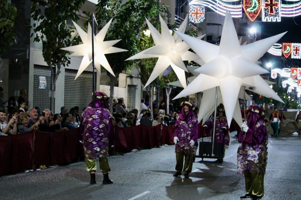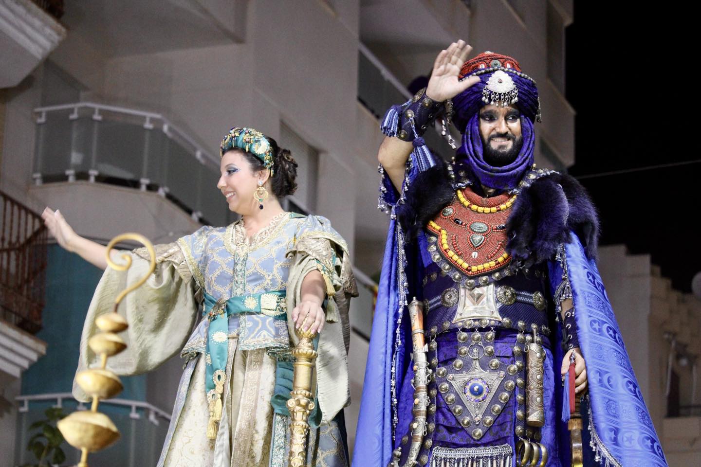 El boato moro, con la banderera Inés Oncina i Riaza; el embajador, David Gomis Martínez; la capitana Clara Tarancón Baeza, y el capitán: Pedro Tarancón Almena, cerró la entrada con un boato que nos deparó espectáculos de luz y sonido, recreaciones del desierto y el universo, cetrería, grupos de ballet y unos trajes asombrosos.