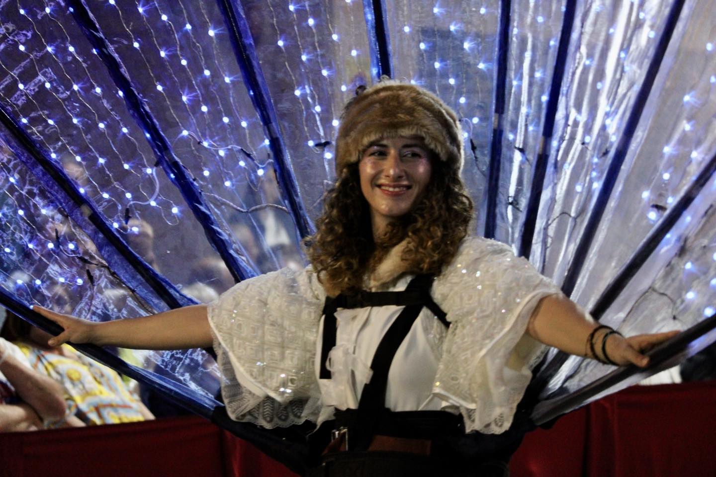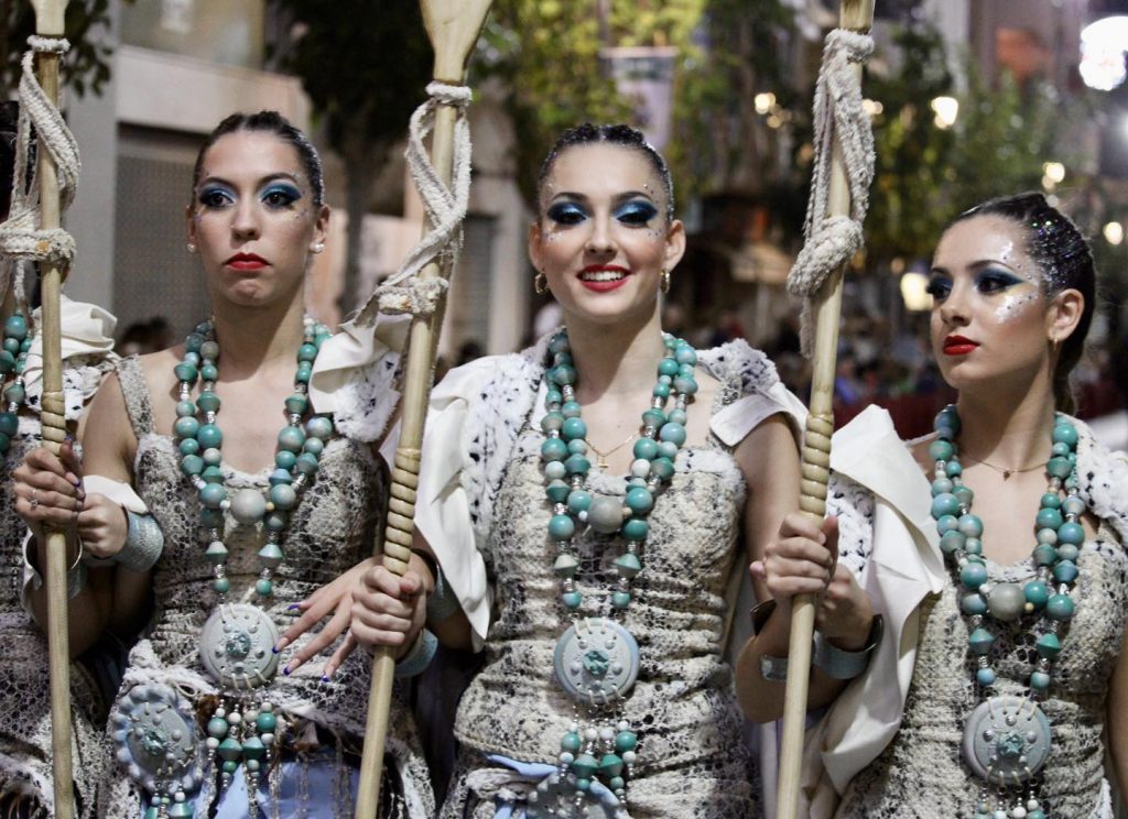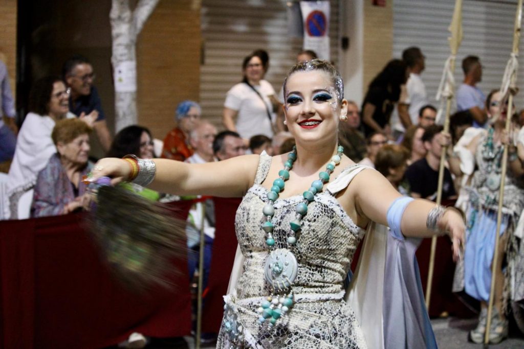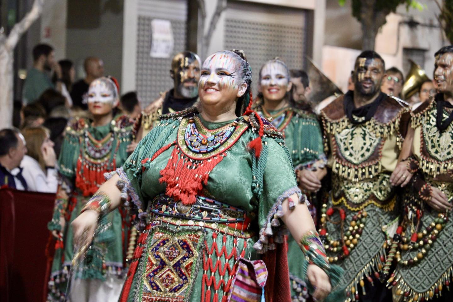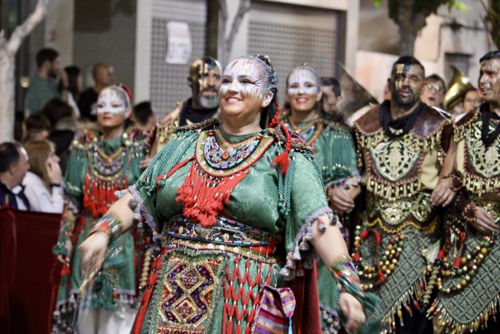 En los desfiles se palpa la sana rivalidad entre los bandos, siempre en beneficio de la fiesta y del espectador. El de anoche, multitudinario, fue una muestra palpable de ello. Los estandartes comunican las fechas de fundación de las comparsas, y tras ellos… tras ellos una exhibición de magia y color que impactó de forma especial a turistas extranjeros, ávidos de información sobre qué era aquello tan impresionante que captaban con sus móviles para enviar imágenes de cada detalle por medio mundo.