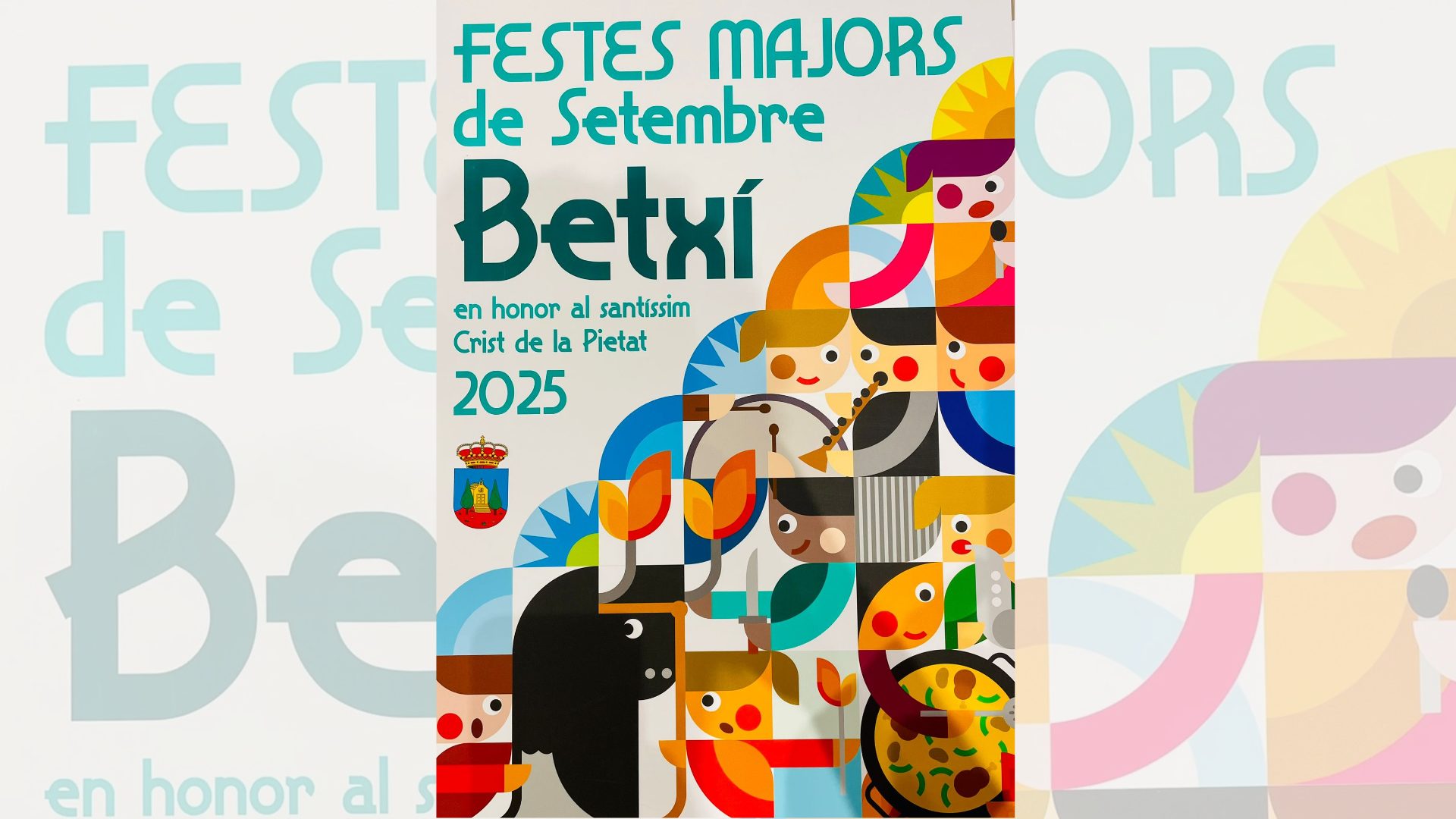 El cartell “Participant en la festa”, creat per Alfonso Gimenez Ventura i Àfrica Gimenez Ballester, serà la imatge que anunciarà les pròximes Festes Majors de Setembre de Betxí, en honor al Santíssim Crist de la Pietat. La proposta, reconeguda amb el primer premi i una dotació de 250 euros, s’ha imposat a les altres 14 obres presentades a la convocatòria d’enguany.