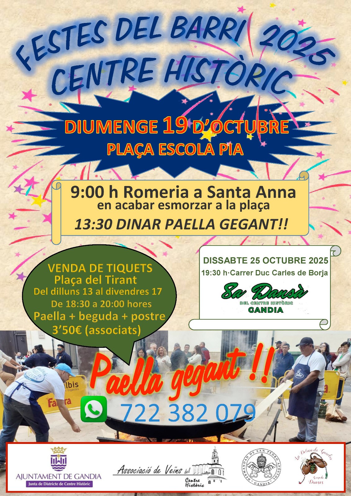 A més, el 25 d’octubre a partir de les 19.30 hores se celebrarà ‘La Dansà’ del Centre Històric de Gandia la calle Duc Carles de Borja a càrrec del del grup de ball ‘La delicà de Gandia’.