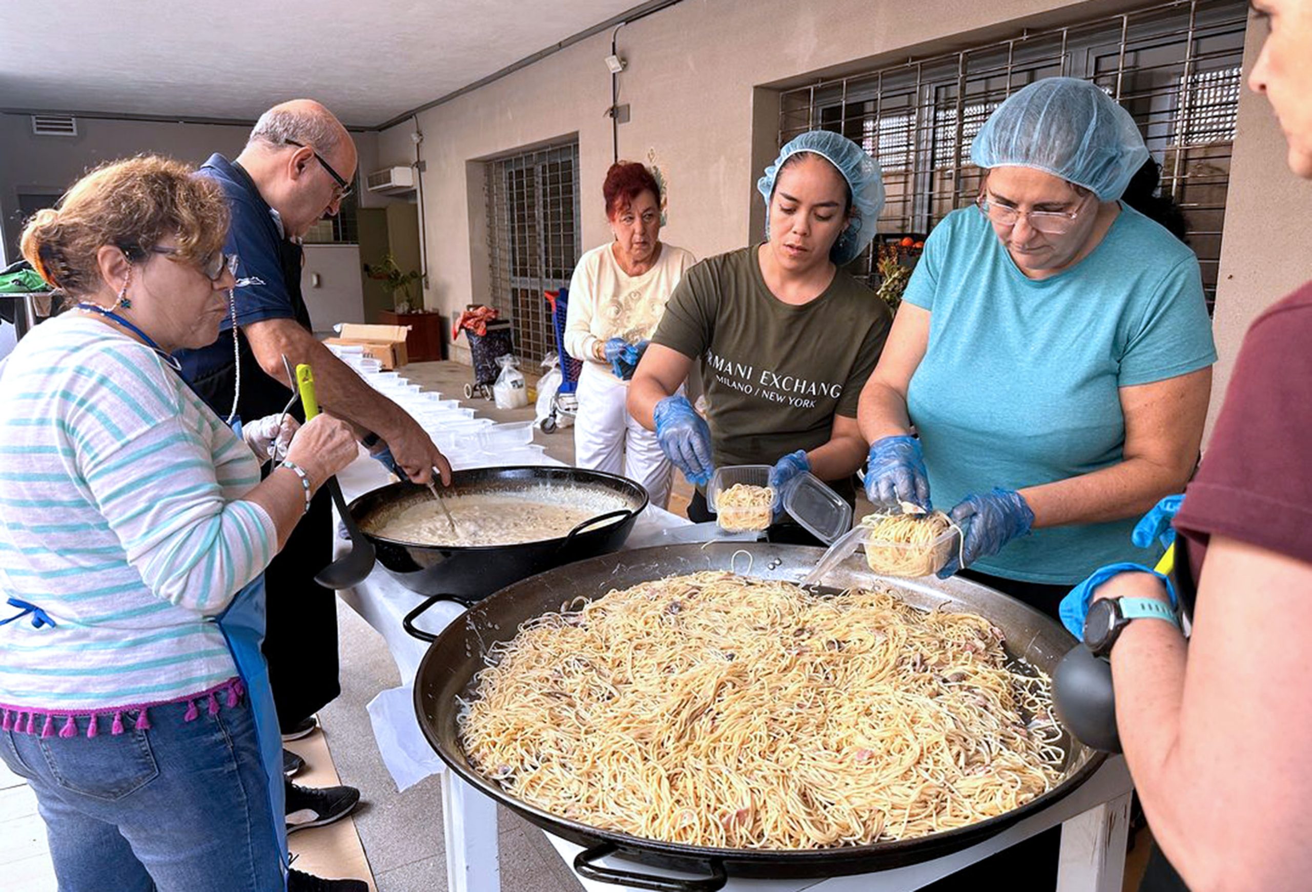 El pasado domingo, hicieron diez paellas gigantes, en el exterior del patio, cada una de ellas para 50 personas, según indican desde la parroquia que agradecen la enorme generosidad de particulares, comercios y empresas de toda España, que nos traen alimentos, entre otras ayudas.