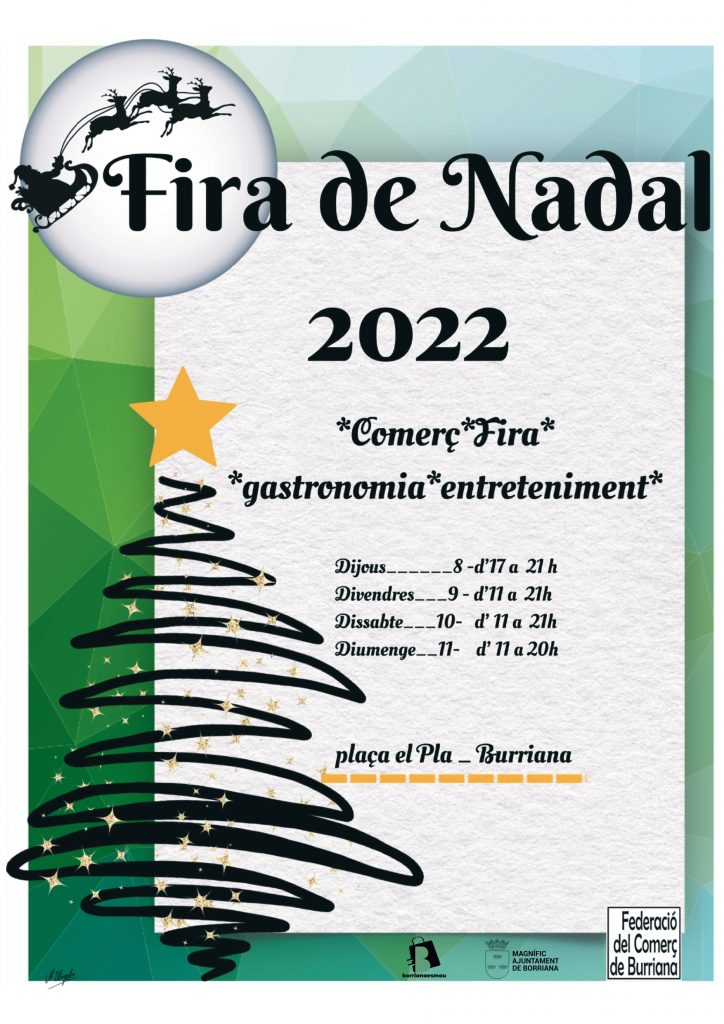 Enguany el comerç local de Borriana eixirà novament al carrer per a participar en la Fira de Nadal que se celebrarà del 8 a l’11 de desembre en la plaça del Pla, en què els comerços podran exhibir i vendre els seus productes i els visitants podran adquirir-los en un ambient prenadalenc.