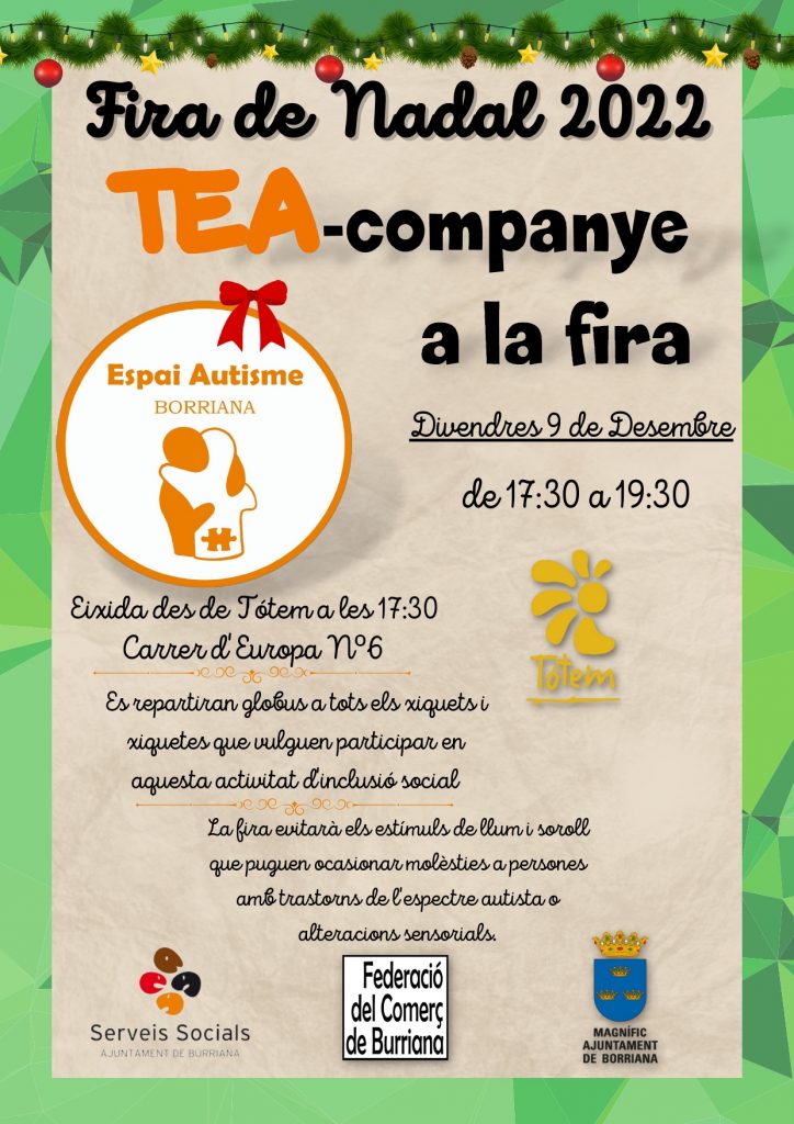 Com a novetat enguany, la Fira tindrà una activitat inclusiva impulsada per Espai Autisme, el divendres 9 de desembre de 17.30 a 19.30 hores, amb el nom de TEA-conpanye a la Fira. L’eixida es realitza des de Tòtem a les 17.30 hores, al carrer d’Europa 6, i es repartiran globus a tots els xiquets i xiquetes que vulguen participar. Una camí en la Fira i fins a les 19.30 hores s’evitaran els estímuls de llum i soroll que puguen ocasionar molèsties a persones amb trastorns de l’espectre autista o alteracions sensorials.