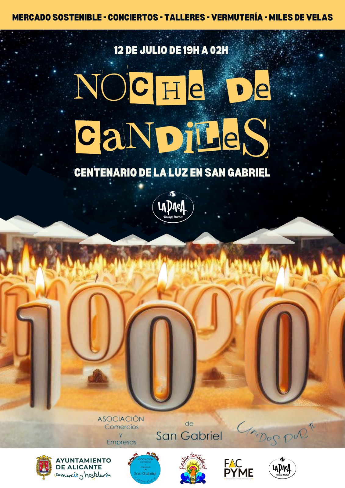 El Ayuntamiento de Alicante y la Asociación de Comercios y Empresas de San Gabriel organizan un evento muy especial este sábado 12 de julio para conmemorar el centenario de la llegada de la luz al barrio en el año 1925 con la celebración de la jornada de dinamización comercial bajo el lema ‘Noche de Candiles’. La concejala de Comercio, Lidia López, y el presidente de la asociación de comerciantes, Juan Manuel Méndez, han presentado este miércoles el cartel y la programación de actividades.