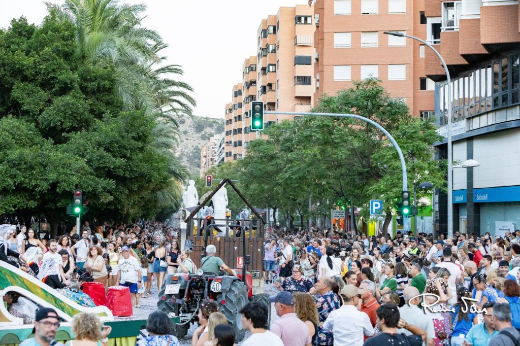 Alicante celebro ayer por la tarde en las inmediaciones del centro comercial Gran Vía, el tradicional Coso Multicolor, donde miles de personas disfrutaron del desfile y lanzamiento de toneladas de confeti con el paso de 43 carrozas y la música de una docena de bandas y collas para finalizar las Hogueras 2025. Este desfile se recuperó en 2023 tras once año sin celebrarse.