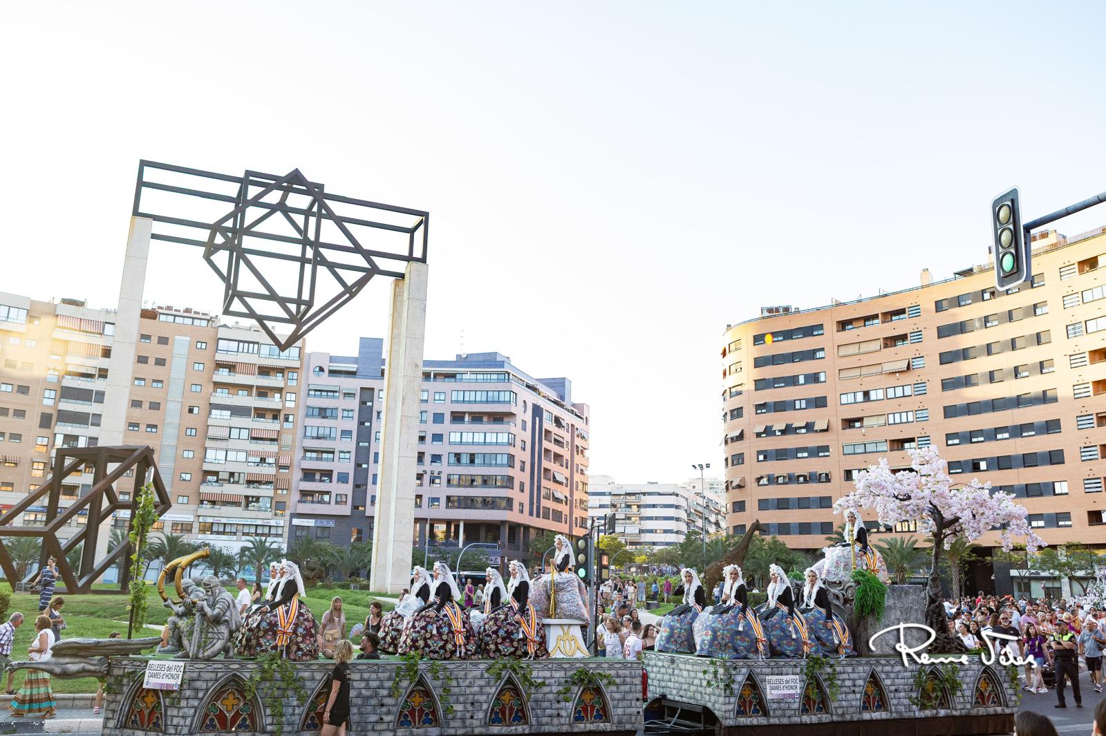 El intenso calor, obligó a la Federació de Fogueres a atrasar el desfile a las 20:30h, para garantizar el bienestar tanto de los cargos festeros como del público.