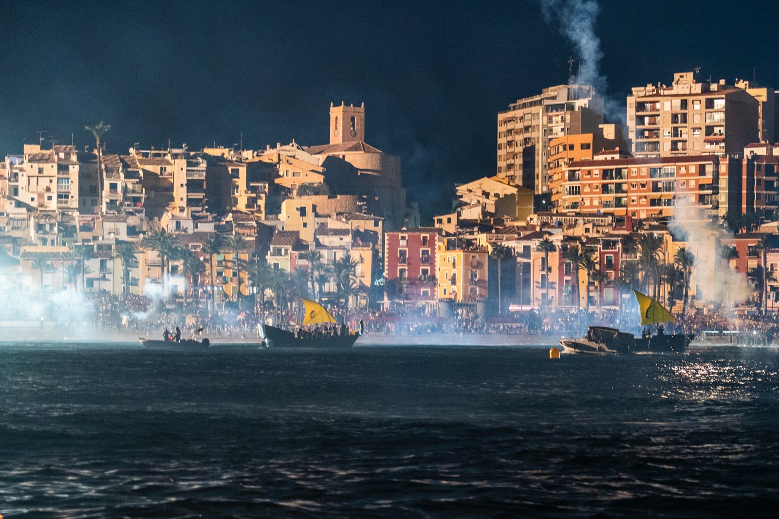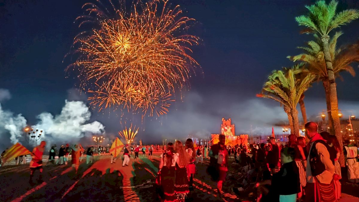 Es el acto del Desembarc de las Fiestas de Moros y Cristianos de Villajoyosa en el que participan más de 4.000 festeros. Esta representación es uno de los momentos más emblemáticos de los días grandes y se celebra en la playa Centro que se ha llenado no solo de festeros, sino de numeroso público asistentes que ha vibrado con la pólvora, los fuegos artificiales y el fuego.