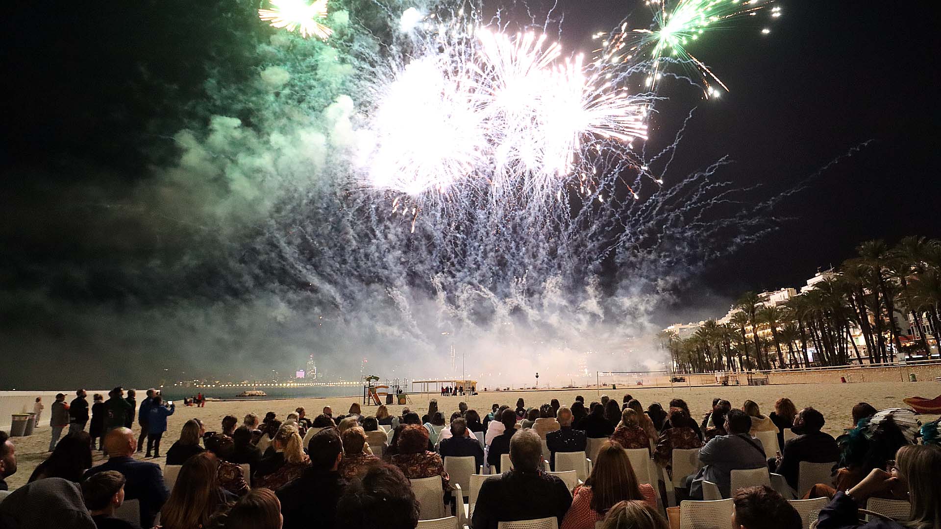El disparo de un espectacular y sonoro castillo de fuegos artificiales desde la playa de Poniente fue el mejor colofón de las Festes Majors Patronals de 2025. La pirotecnia Vulcano iluminó durante cerca de veinte minutos el cielo de Benidorm ante una multitud asombrada, que se congregó en distintos puntos de la ciudad para seguir el disparo de 1.078,61 kilogramos de masa explosiva, con fuegos terrestres y aéreos, y que dedicó después una larga ovación al pirotécnico. Visiblemente emocionadas por todo lo vivido durante estos días, las reinas de 2025, Paula y Aitana; el alcalde Toni Pérez y la edil de Fiestas, Mariló Cebreros, participaron de esa ovación y trasladaron sus felicitaciones a los responsables de Vulcano.