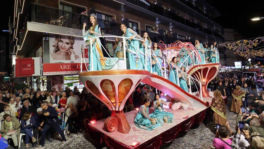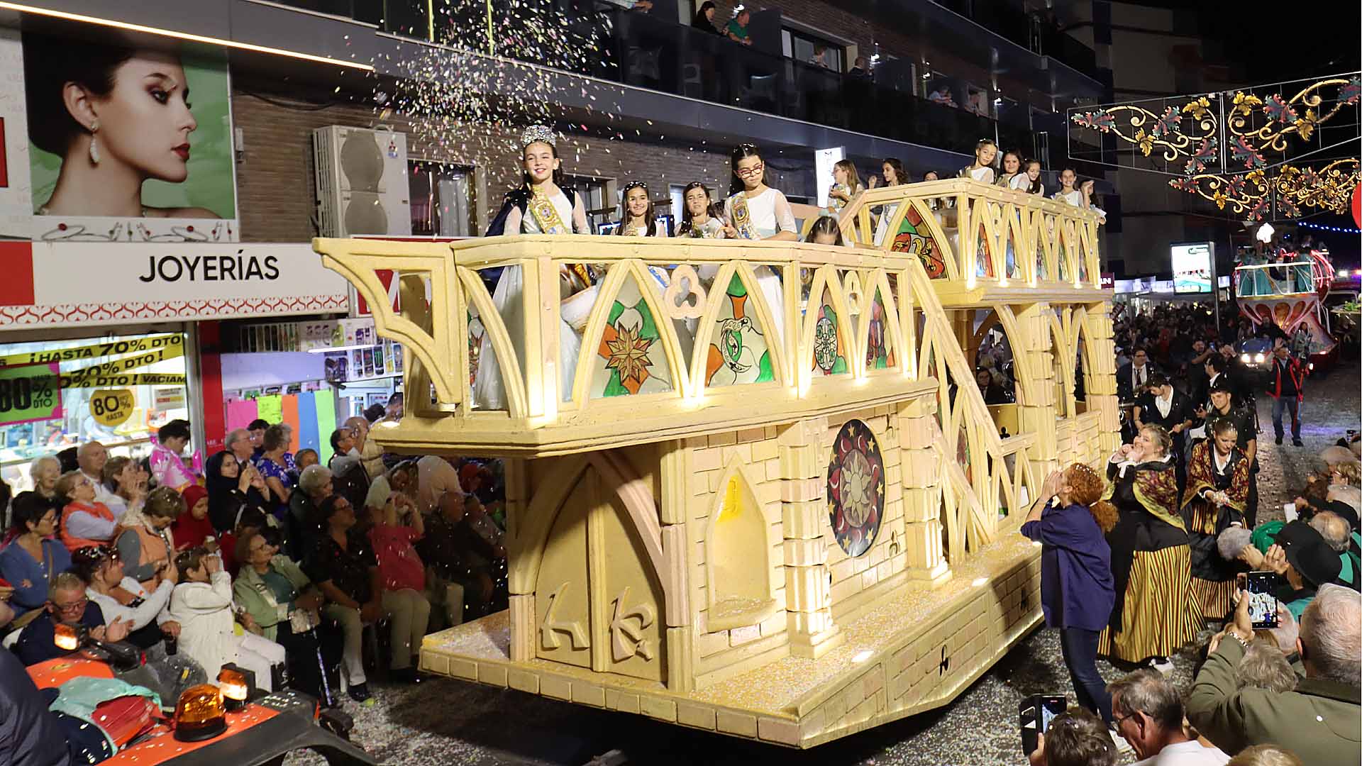 Como es tradición, las últimas carrozas fueron las de las reinas Paula y Aitana y sus Cortes, que a su paso levantaron el aplauso unánime de vecinos y turistas y pusieron el broche de oro a este colorido desfile.