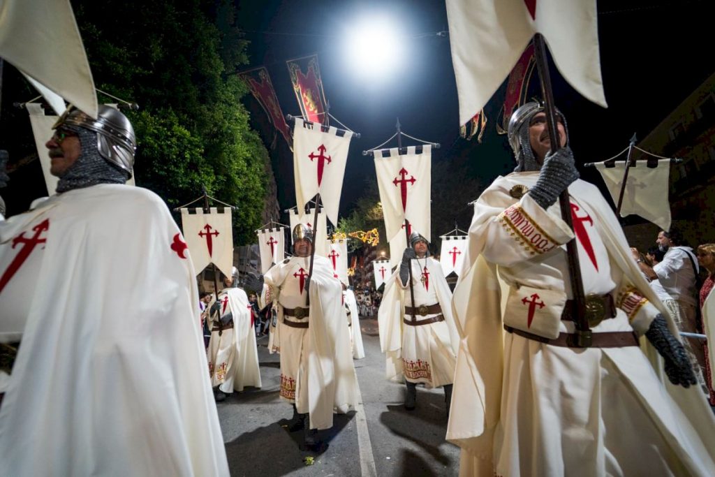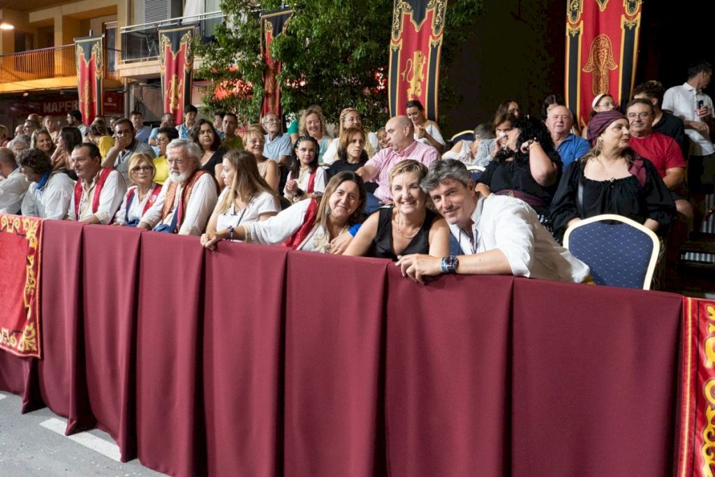 - La compañía que ostenta este año el reinado cristiano cierra el desfile con un boato que trasladó al público al hecho histórico de 1538, al momento previo al ataque de las huestes sarracenas
