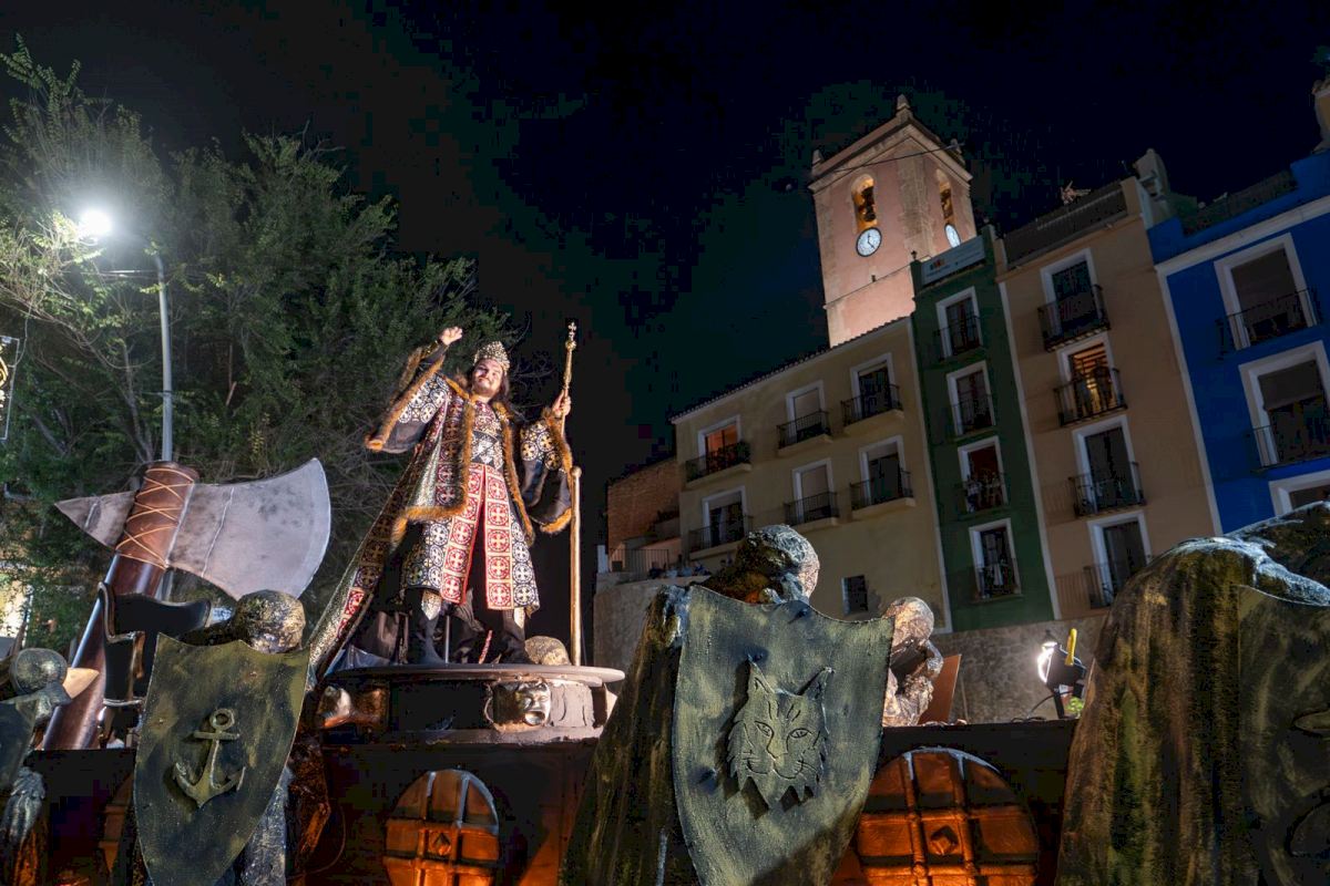 Siglo XVI. Los habitantes de Villajoyosa, una villa entre el mar y la montaña, descansan sin imaginar que el peligro acecha y que las tropas moras están esperando que todo se apague para conquistar la villa. Así empezó el relato de la compañía Destralers, quien ostenta el reinado este año en la figura del Rey Cristiano, Pedro López Morales, quien trasladó al público asistente el Desfile Cristiano a aquel hecho histórico que cambió la historia del municipio.