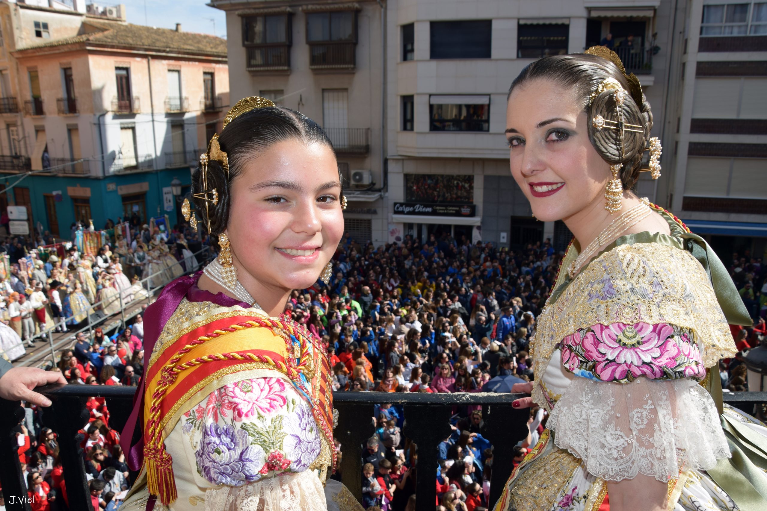 Com ja va sent costum, els màxims representants de les setze comissions falleres de Sueca, El Perelló i Mareny de Barraquetes, junt als membres de la Junta Local Fallera i les Corts d’Honor, recolliren les Falleres Majors de Sueca, Aitana i Clara, en els seus domicilis i arribaren en cercavila fins el consistori.