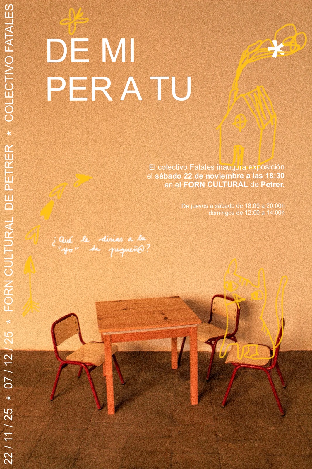 Según ha explicado Sandra Pomares, la exposición parte de la pregunta “¿Qué le dirías a tu yo de pequeñ@?”, “porque, al final, nos parece una manera de conectar con nosotras mismas y hacer que el espectador se cuestione quién ha sido, que se diría…”.