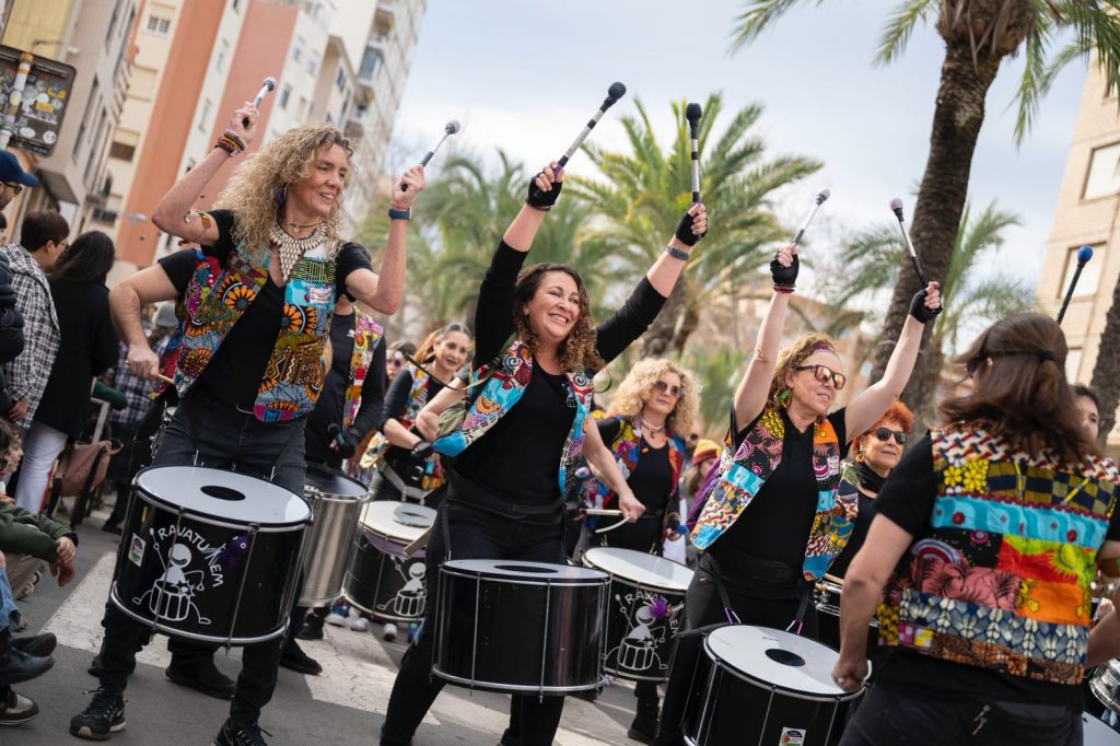 La jornada, diferente a la de otros años por las circunstancias meteorológicas vividas ayer, ha arrancado con el desfile infantil, seguido del gran desfile de Carnestoltes, en el que han participado pequeños y mayores disfrazados, carrozas, charangas y batucadas como los Dimonis de la Plana y Rabakuten, además de la compañía Drag Magic y la compañía LA FAM acompañando al Rey Carnestoltes.