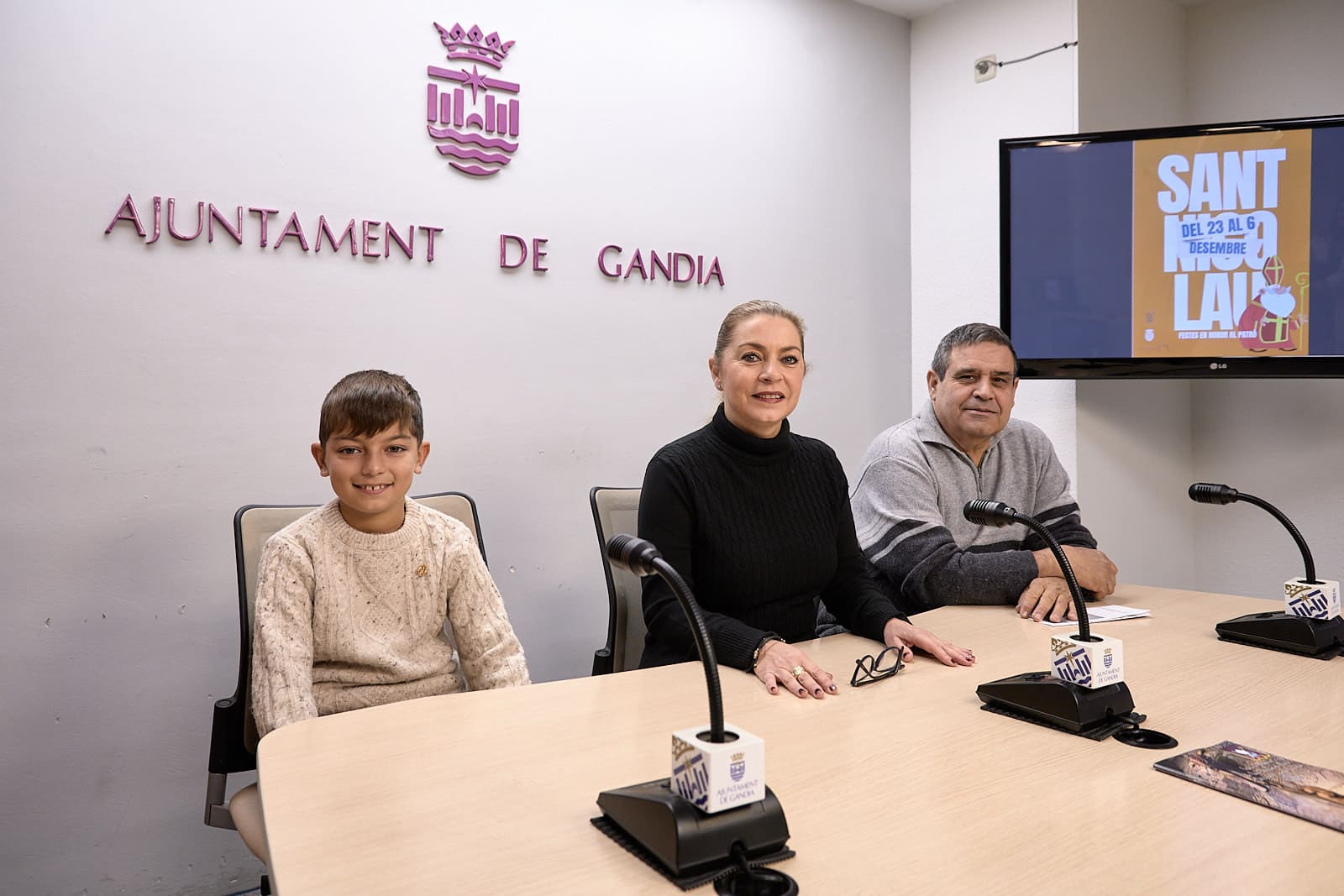 Elena Moncho, presidenta de la Junta de Districte del Grau, juntament amb David Peris, clavariet de les festes, i Manolo García, membre de la directiva de les festes, han presentat aquest matí en roda de premsa les Festes de Sant Nicolau 2025, que se celebraran fins al 6 de desembre.