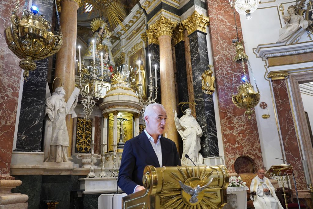 El presidente del club ha dirigido unas palabras a la patrona de los valencianos, “una vez más venimos a pedirte luz, fuerza y protección, a ofrecerte nuestro compromiso, esfuerzo e ilusiones, sabemos que el camino no será fácil”, haciendo referencia a la Primera División en la que jugarán este año los primeros equipos de la sección masculina y femenina.