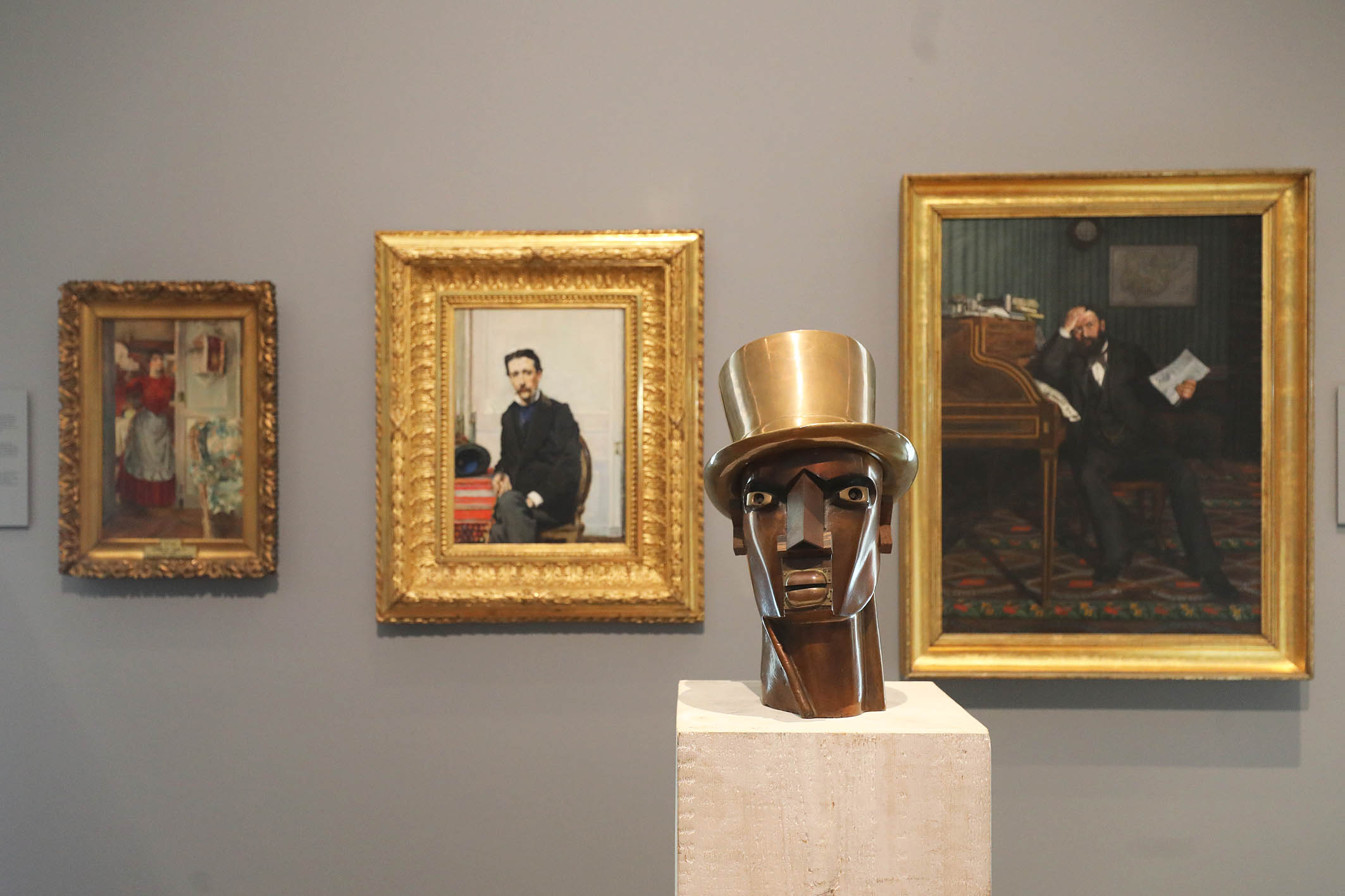 ‘Studiolo. Una mirada a la colección de Candela A. Soldevilla’ presenta, además, otras conexiones en forma de humor como la que establece ‘Dama con el dedo en la nariz’, de Gerard Mas (2014), artista cuya iconografía reinterpreta en clave pop obras clásicas, con ‘Reposición de Colón’, de Francisco Jover Casanova (1881); o la que se extrae de la simpática contraposición entre la obra ‘Chimperator’, de Daniel Sueiras (2018), que emplea un lenguaje artístico con referencias al arte clásico con un punto humorístico, y el busto del ilustre Étienne Geoffroy Saint-Hilaire, realizado por Julie Charpentier (1802).