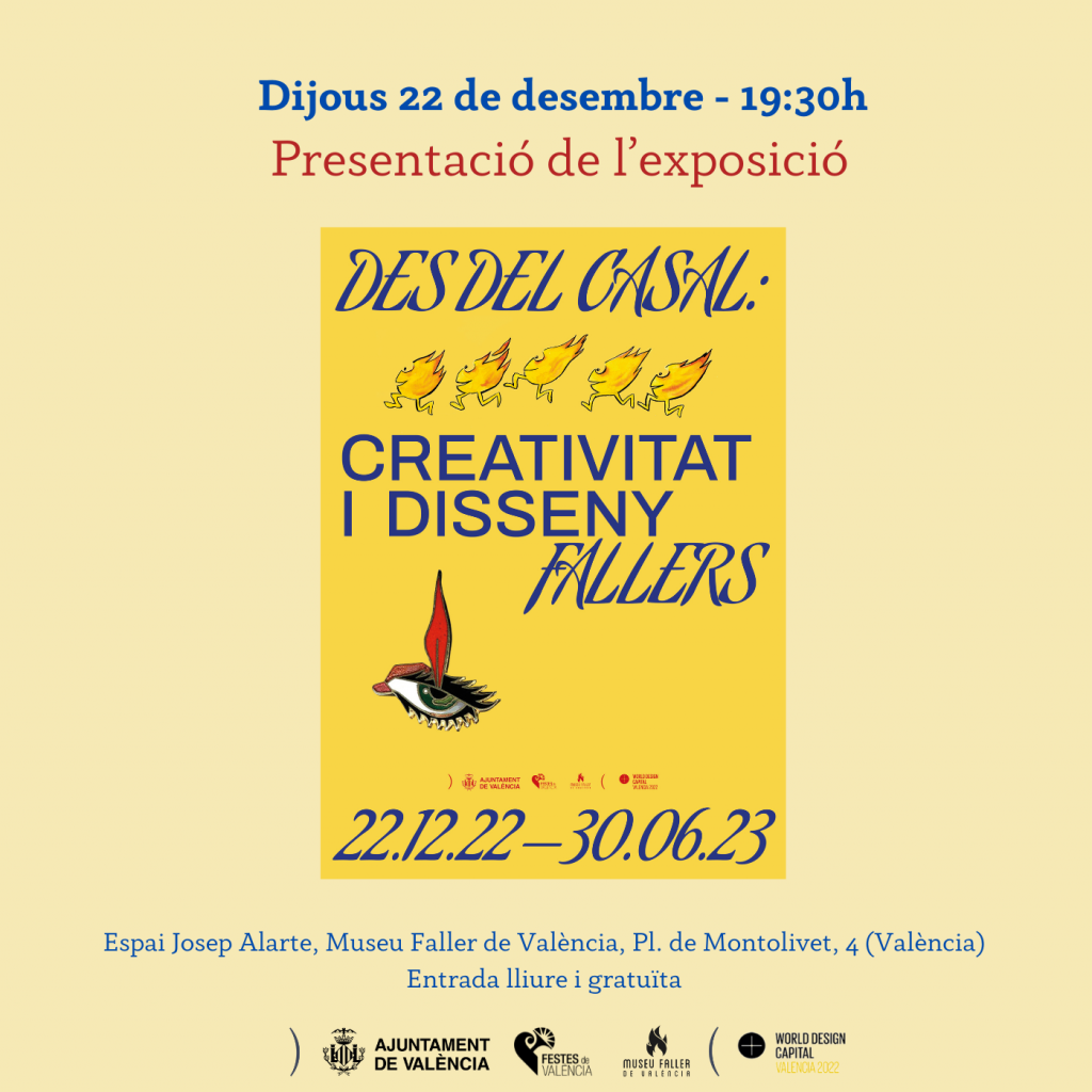- Dijous 22 s’inaugurarà l’exposició “Des del casal. Creativitat i disseny fallers”, en el marc de la celebració de la Capitalitat Mundial del Disseny