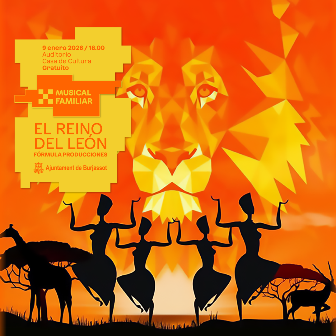 El viernes 9 de enero de 2026, a las 18.00 horas, el Auditorio de la Casa de Cultura de Burjassot acogerá El Reino del León, un musical familiar gratuito a cargo de Fórmula Producciones. La entrada será libre hasta completar aforo.