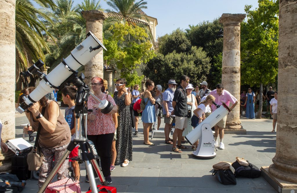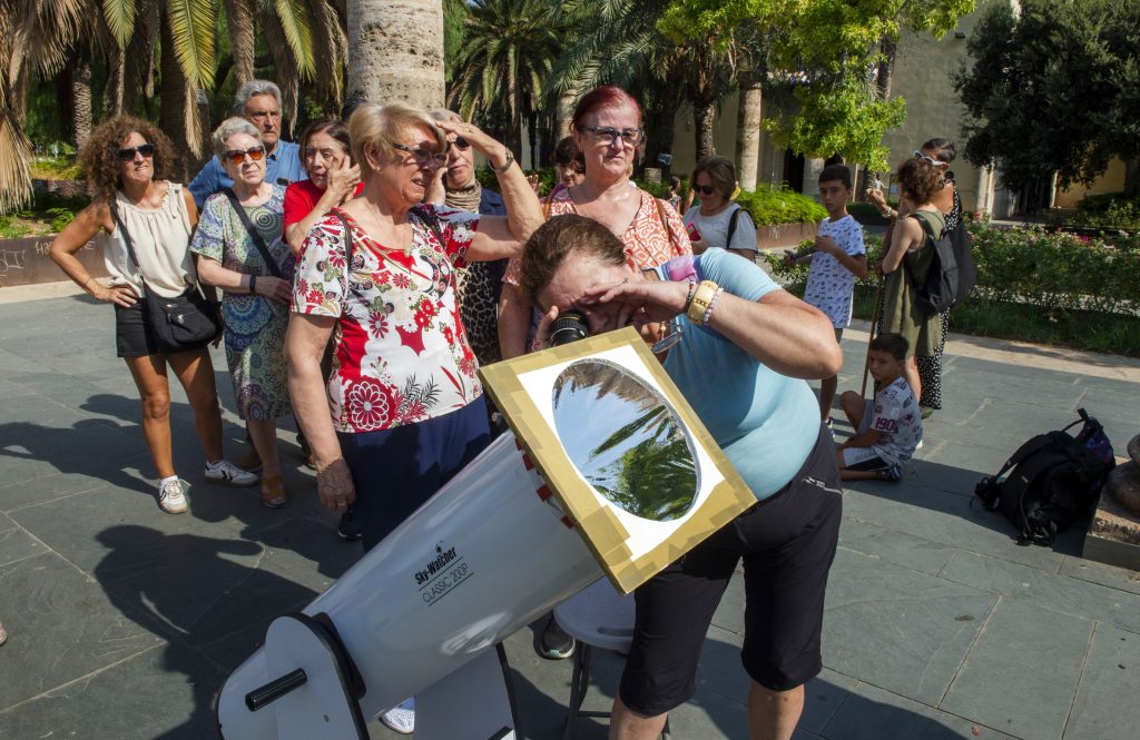 El Museu Valencià de la Il·lustració i de la Modernitat (MuVIM) ha reunido esta mañana a más de 200 personas en una observación solar como preámbulo al eclipse total del 12 de agosto de 2026, un fenómeno que no se produce en la península Ibérica desde hace más de un siglo y que se verá especialmente bien desde algunas zonas del interior de la provincia de Valencia. Es así porque se producen las condiciones necesarias como son, entre otras, la baja contaminación lumínica.