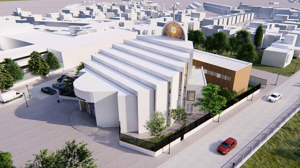 La construcción, que contará también con una capilla lateral para las celebraciones diarias, salones parroquiales y casa para el sacerdote, se prolongará durante 18 ó 20 meses y la obra ya se encuentra adjudicada. Este mes de febrero se firmará el contrato de obras y a partir de ahí, comenzarán los trabajos.