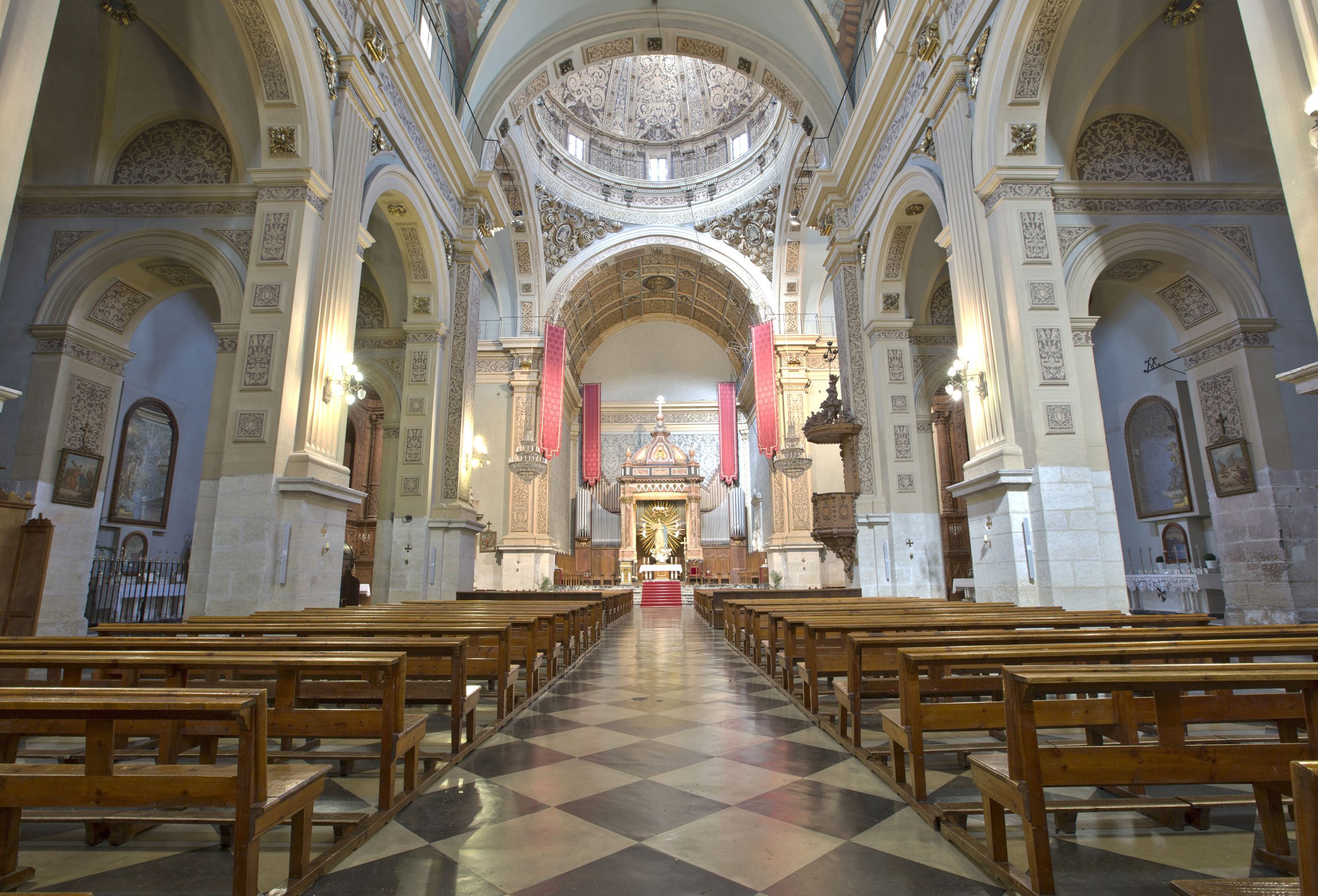 Del templo, destaca el crucero, el presbiterio y la cúpula con tambor octogonal que descansa sobre pechinas. Allí se conserva el mausoleo de los duques de Llíria y de Alba, construido en Roma por el escultor José Álvarez.