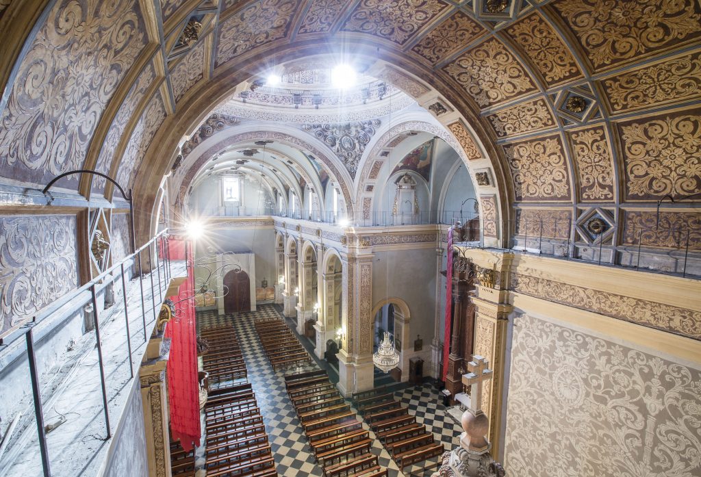 La construcción del templo actual es del siglo XVII: “excavaron parte de la montaña para edificarlo”. Se construyó entre los años 1627 y 1676, aunque su fachada con esculturas no fue terminada hasta el año 1704. Se trata de una iglesia barroca que sigue el espíritu de la Contrarreforma.