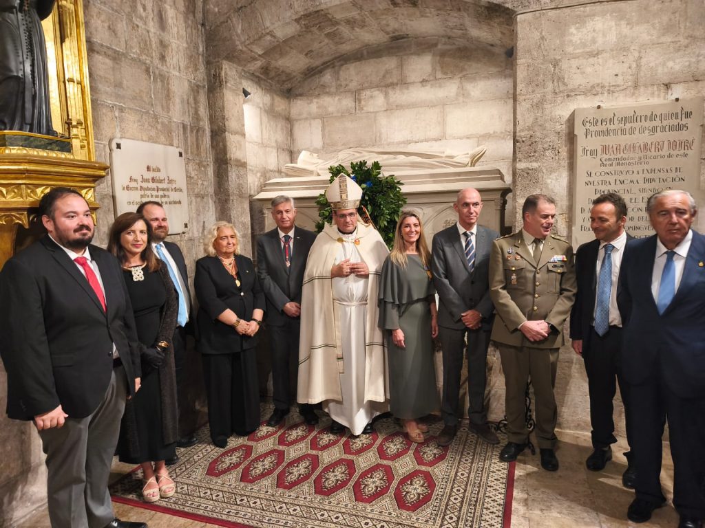 En finalisar el Te Deum, la Regina dels Jocs Florals de la Ciutat i Regne de Valéncia, Maria Garcia Vallcanera, junt a la seua Cort d’Amor i el president de la nostra entitat, han realisat una ofrena floral en la tomba de Gilabert Jofré (fundador en Valéncia, fa més de 600 anys, del primer hospital siquiàtric del món), i posteriorment, en el mateix monasteri, s’ha procedit a fer entrega del premi “Crit Valencià de l’Any”.