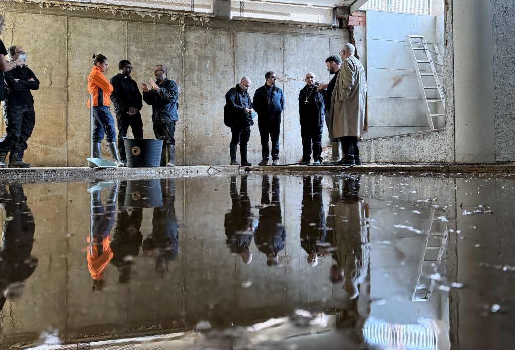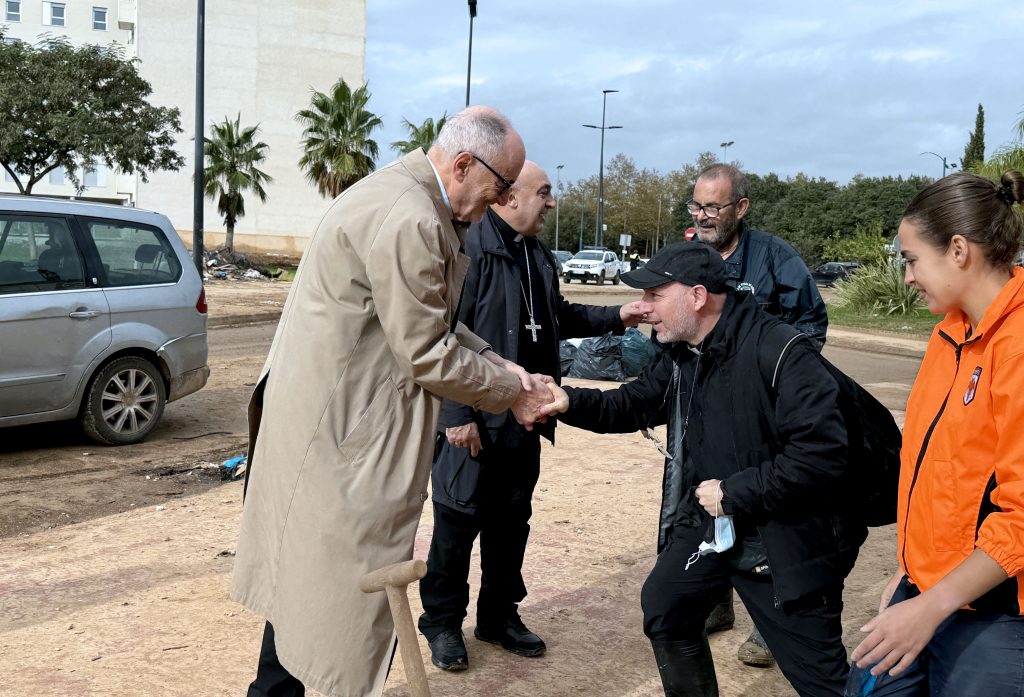 En Alfafar, el Cardenal, acompañado por el Arzobispo de Valencia, mons. Enrique Benvent, ha conocido de primera mano la catástrofe vivida, por parte del párroco Salvador Aguado, de la parroquia Santa Fe, quien ha asegurado que “lo hemos perdido todo”.
