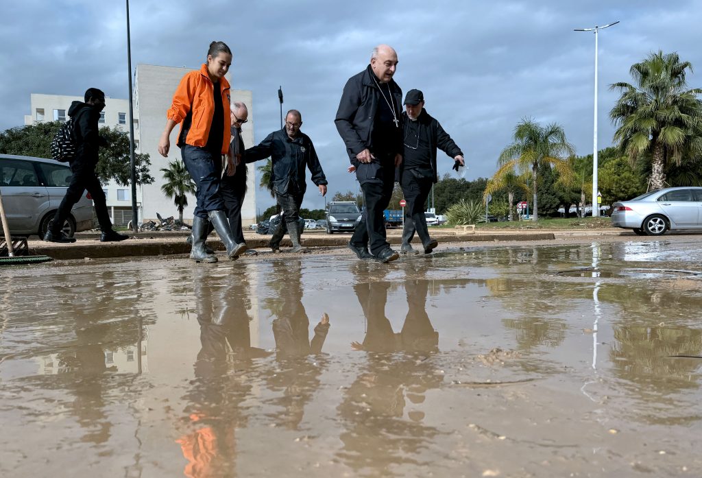 Así, ha visitado la parroquia Nuestra Señora del Pilar, uno de los templos acogedores para dar de comer a los voluntarios, más de 300 de ellos se concentran en este espacio para ayudar. Una situación dura que se agudiza por las tardes cuando empieza a anochecer porque tienen que paralizar su actividad, además cesa también toda la labor de la UME, y de las maquinarias. Todavía hay muchas plantas bajas sin luz con lo que todavía se complica más la situación.