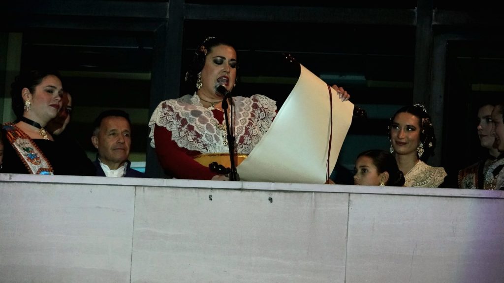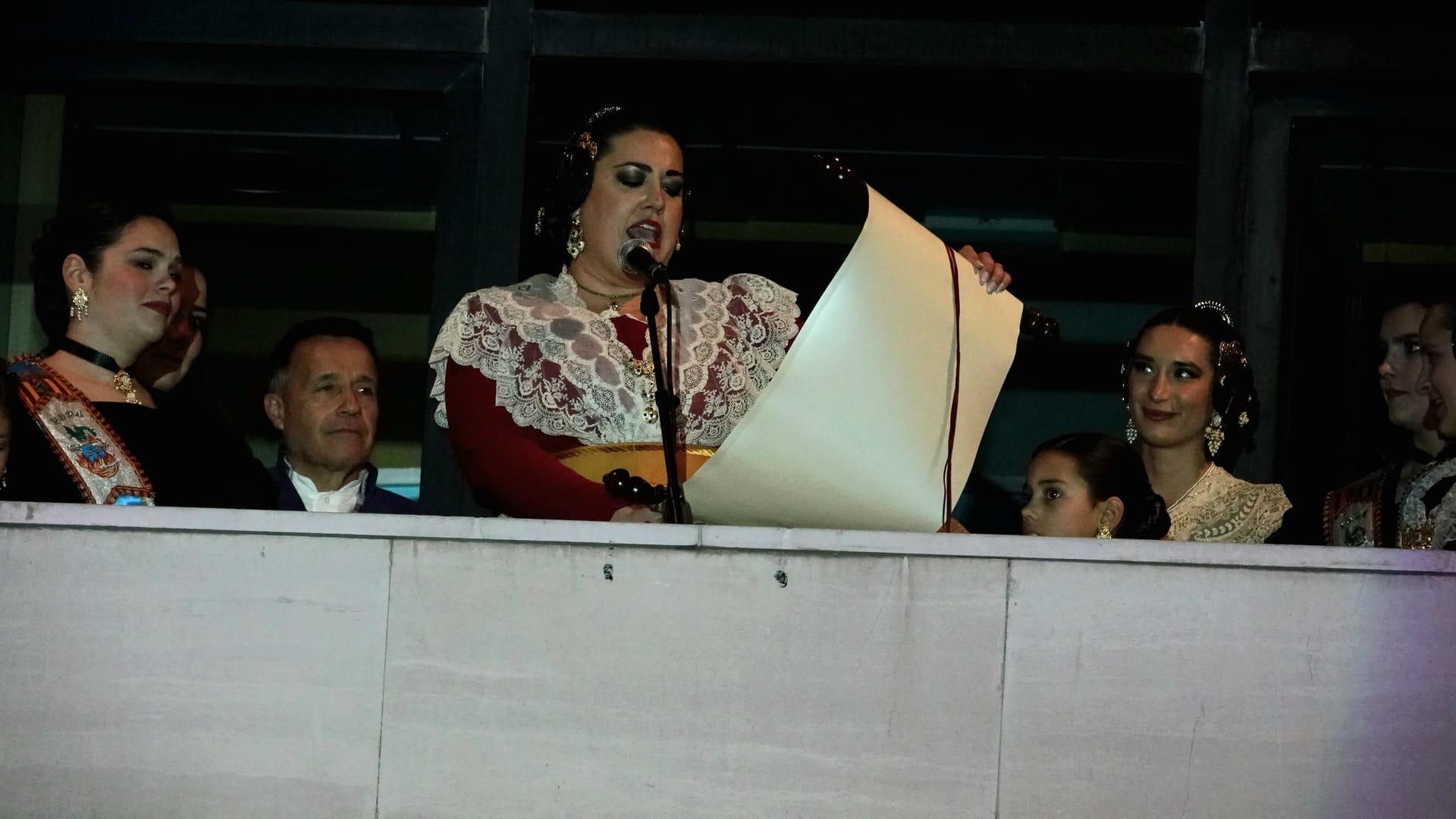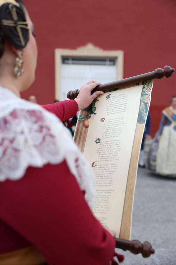 De esta forma, Paula Vidal ha anunciado a los burrianenses la llegada de la gran semana fallera y ha destacado la labor de los falleros y falleras que con su trabajo y esfuerzo consiguen sacar adelante una fiesta que es un modelo fiel a sus tradiciones y que posee un fuerte arraigo en nuestra población, según ha declamado con los emotivos versos de su discurso.