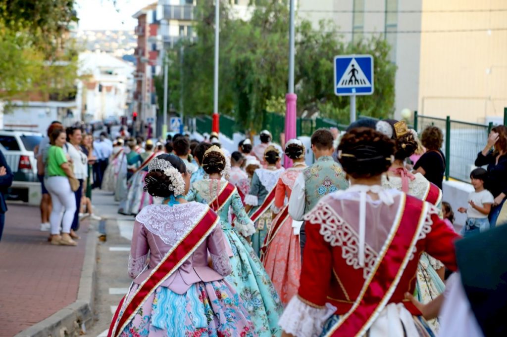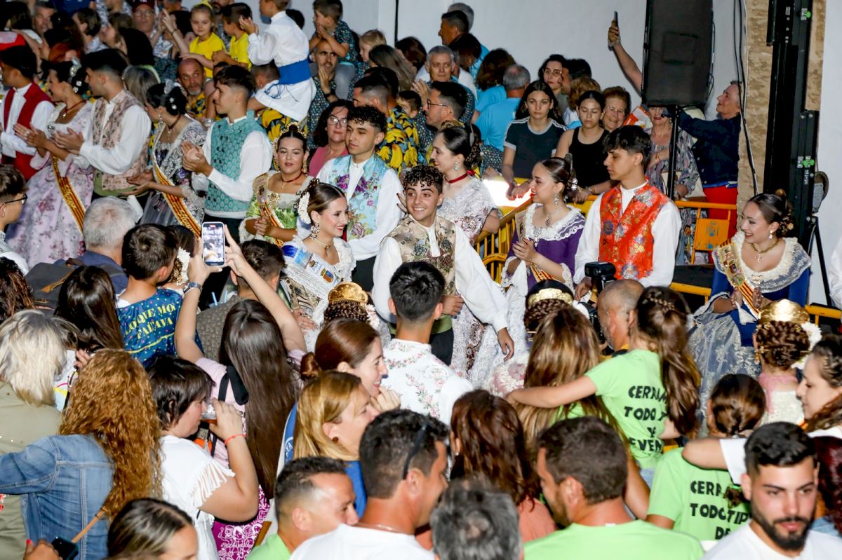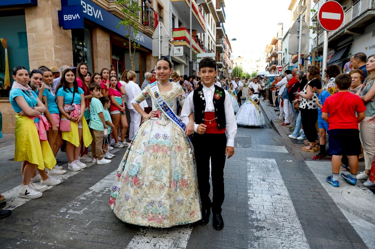 Poco antes, un pasacalle recorrió el Centro Histórico con la Comissió Infantil y Juvenil, encabezadas por la reina, Claudia García, sus damas Lucía Bisquert y Gisela Devesa y los presidentes, Lucas Mata y Laura Sánchez; la Quintà 2024 “A Cabassaes”, con los presidentes, Jaime Valverde y Júlia Roselló, y cerrando el pasacalle la reina de la Foguera, Ángela Tachó y sus damas, Nahir Sánchez y Nerea Vidal.