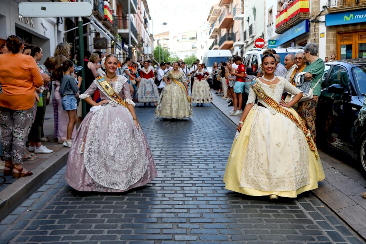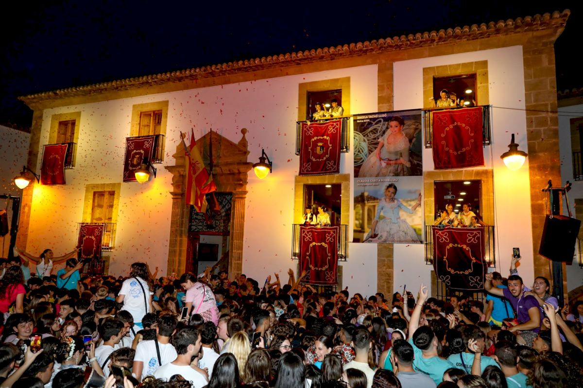 Las reinas, Ángela Tachó y Claudia García invitaron a todo el pueblo a disfrutar de las fiestas, porque “entre todos vamos a hacer que Xàbia luzca preciosa con las calles engalanadas la alegría de la gente y la fiesta de las peñas”. Todos los rincones de Xàbia se llenan de música y de olor a pólvora que “nos acompañarán hasta la nit de la cremà de la Foguera”.