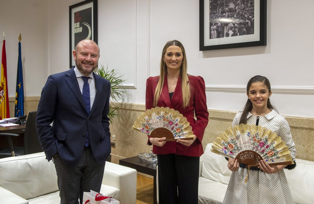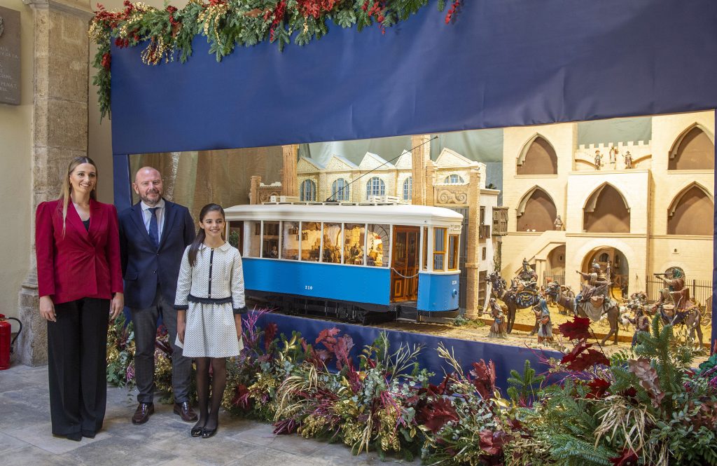 La visita també ha discorregut pel saló de plens provincial, la sala 9 d’Octubre i el despatx del president, sense oblidar el tradicional Betlem que cada any acull la Diputació coincidint amb les dates nadalenques, en esta ocasió obra del valencià Pedro Ródenas, que fon la seua trajectòria ferroviària i la seua formació belenista en una original proposta que presenta el naixement a l’interior d’un tramvia dels anys 30. Al final de la visita, el president Gaspar ha entregat a Laura Mengó i Paula Nieto sengles ventalls personalitzats elaborats artesanalment a Aldaia.