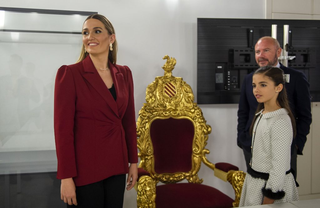 Gaspar ha mostrat a les màximes representants de les Falles 2023 algunes de les joies patrimonials de la Diputació, al mateix temps que relatava episodis històrics d’una institució amb més de 200 anys. D’esta manera, Laura i Paula han descobert tresors com la Cadira d’Or que va servir de tron a Alfons XIII durant la seua visita a l’Exposició Regional de 1909 i que s’utilitza cada any en l’exaltació de les Falleres Majors de València; l’escala imperial del Palau dels Scala; el saló de plens; i la sala de Respecte, on actualment s’exhibix una mostra de l’artista valencià Miquel Navarro.
