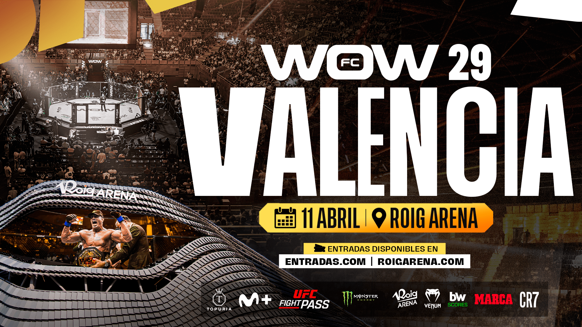 El Roig Arena acogerá el 11 de abril WOW 29, el evento de MMA en el que participarán luchadores conocidos de las artes marciales mixtas.