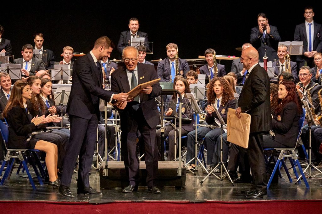 Durant l’acte es va retre un emotiu homenatge al mestre Miguel Vercher, qui va ser nomenat nou director honorífic de la societat musical. L’alcalde, José Manuel Prieto, i el president de la banda, Hovik Avetyan, li van fer entrega d’un detall institucional abans dels seus parlaments.