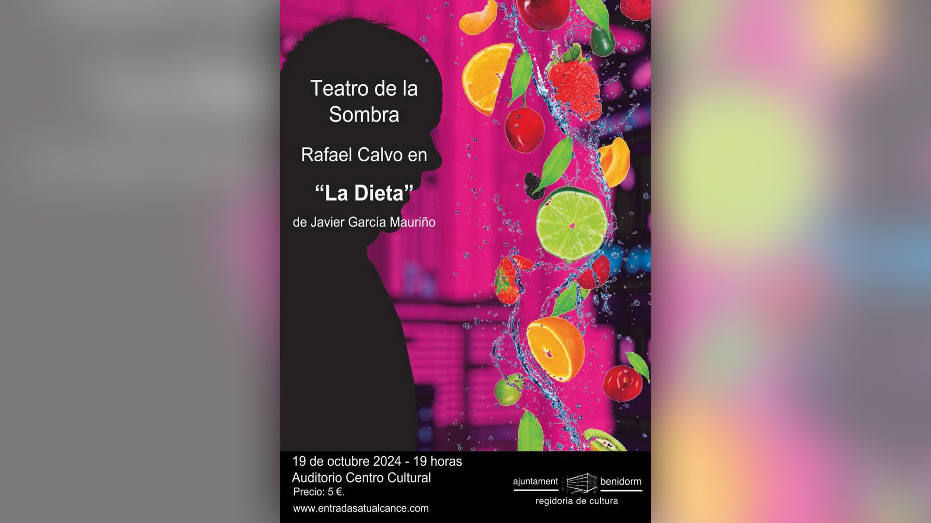 El Centro Cultural de Benidorm acoge el próximo sábado, 19 de octubre, una nueva representación teatral dentro de la programación del ‘Benidorm Cultural’ organizada por la Concejalía de Cultura para los meses de septiembre y octubre. Se trata de la obra ‘La Dieta’, una reflexión sobre la condición humana en sus aspectos más cotidianos, sobre todo aquello que nos afecta en nuestro día a día, que llega de la mano de Teatro de la Sombra.