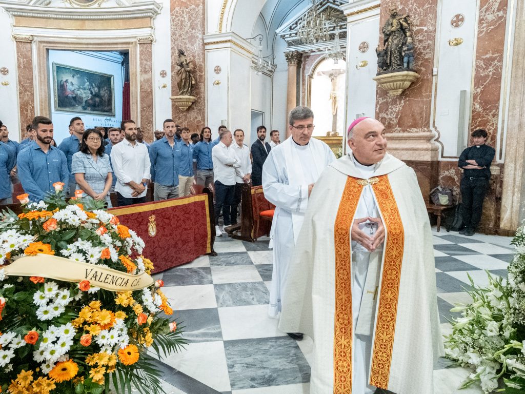 En sus palabras el Arzobispo ha agradecido la visita del equipo y ha señalado “que es una alegría recibiros en esta Basílica por primera vez desde que soy arzobispo de Valencia”. “Siempre con la esperanza de que podáis volver a ofrecer vuestros trofeos y éxitos aquí a la Santísima Virgen María”, ha añadido.