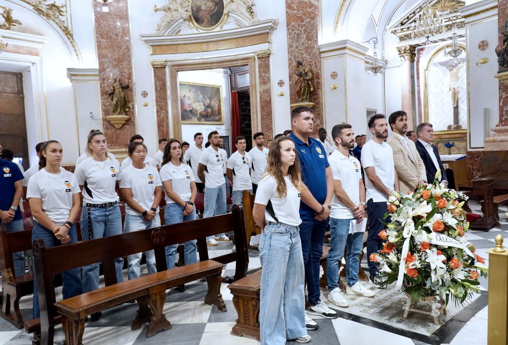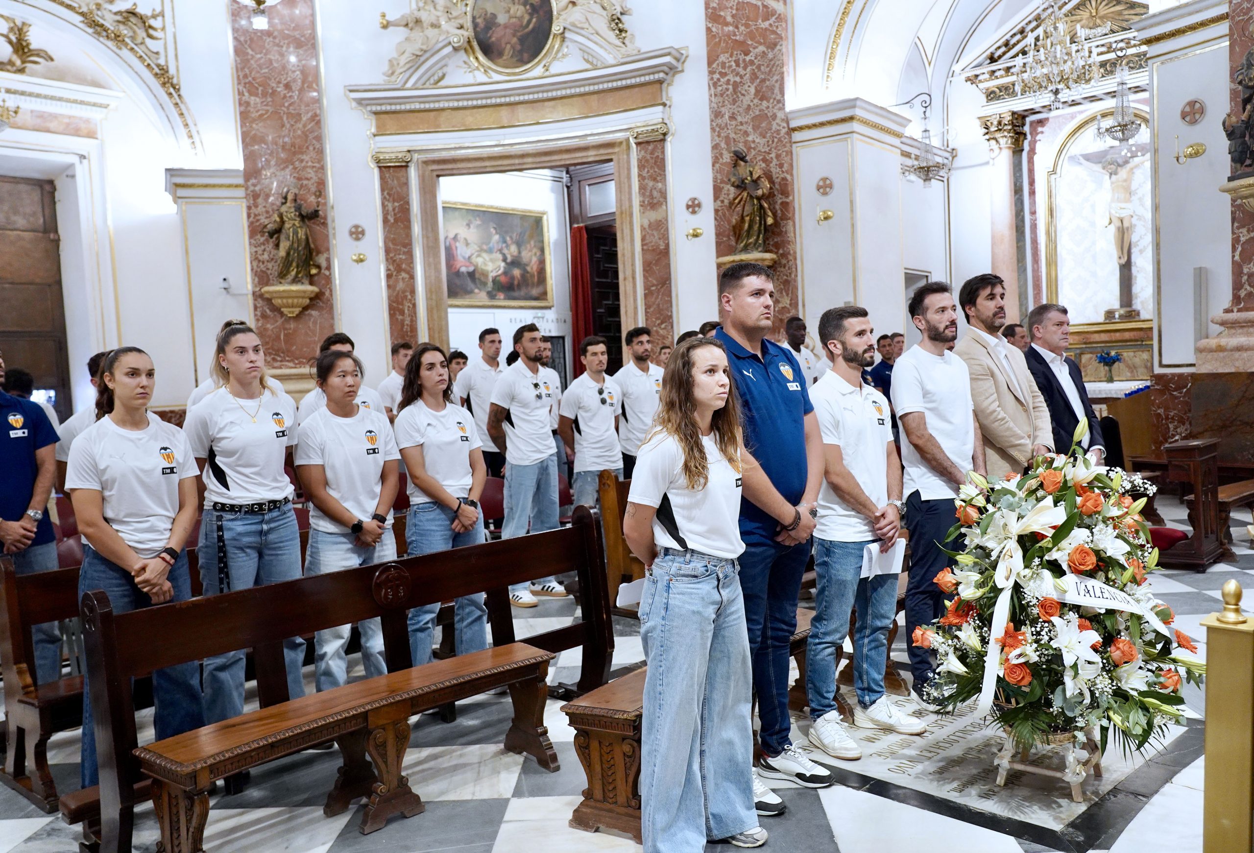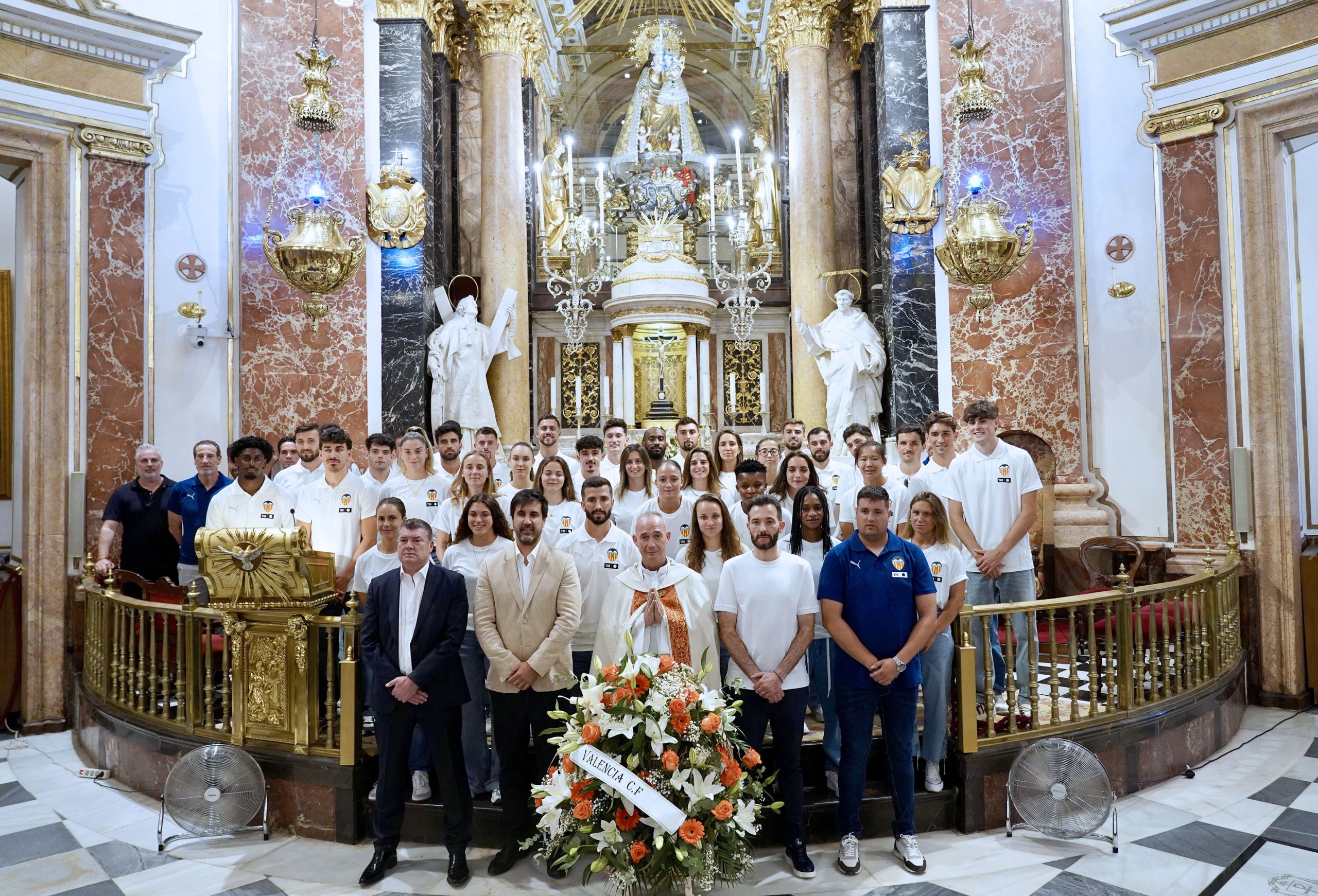 El Valencia CF ha visitado este viernes la Real Basílica de Nuestra Señora de los Desamparados, para realizar la tradicional ofrenda floral a la patrona, con motivo del inicio de temporada.